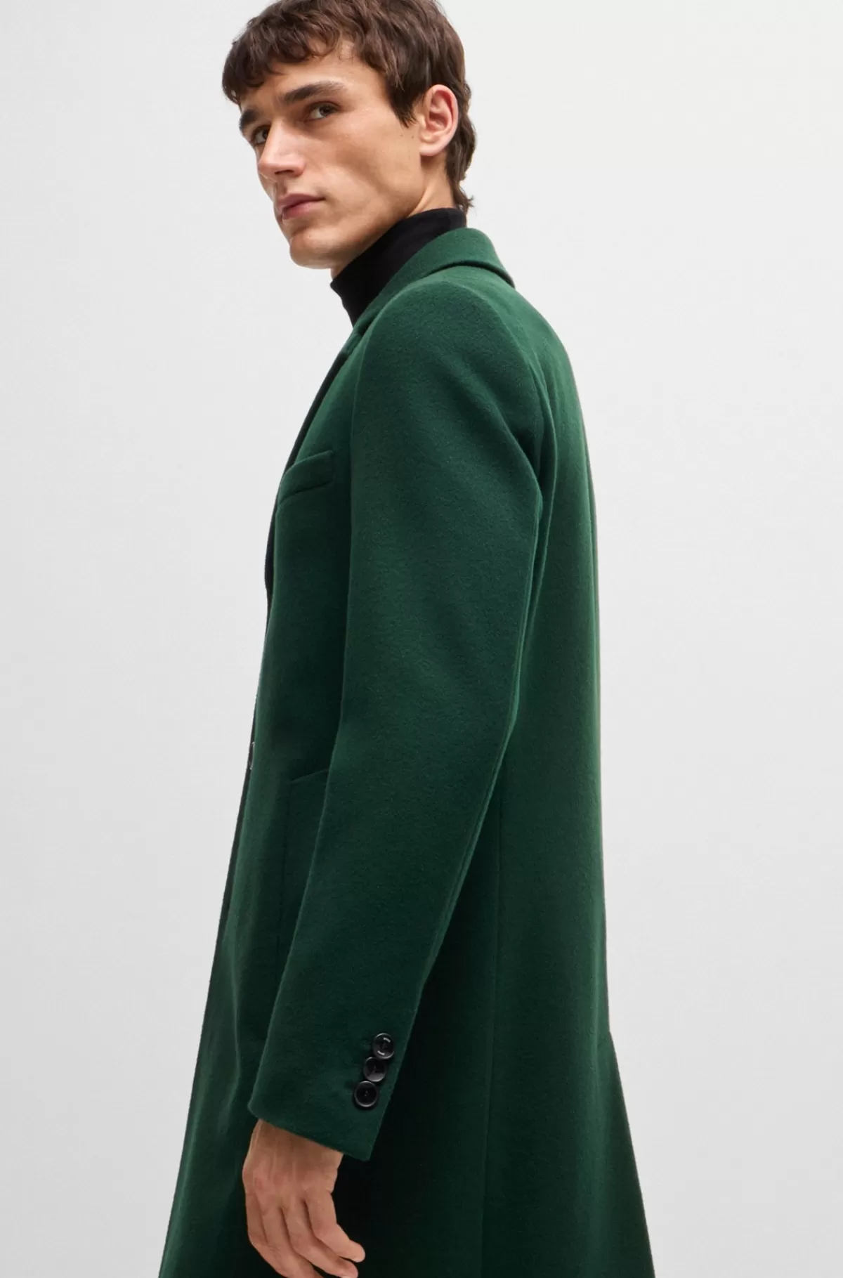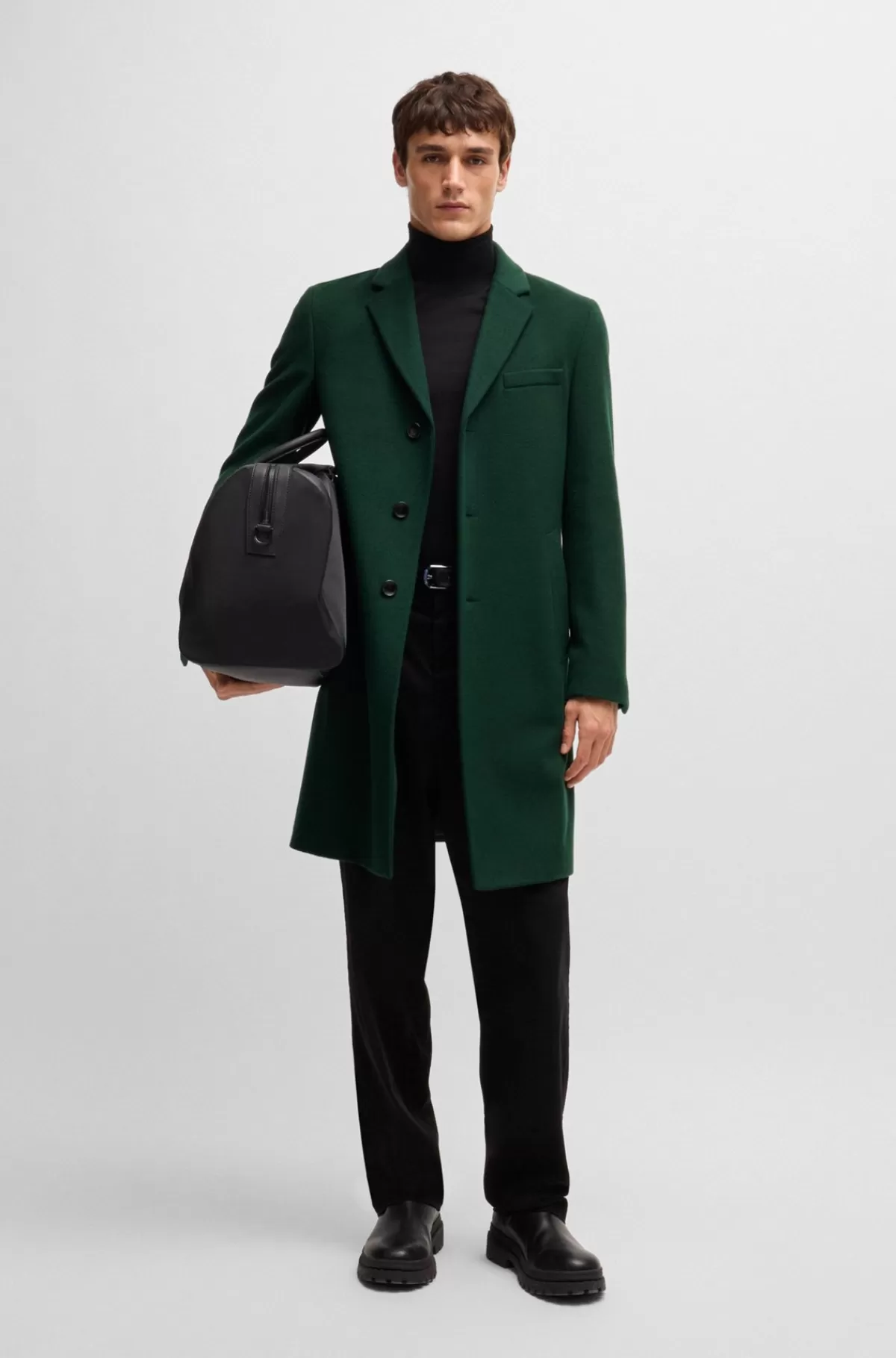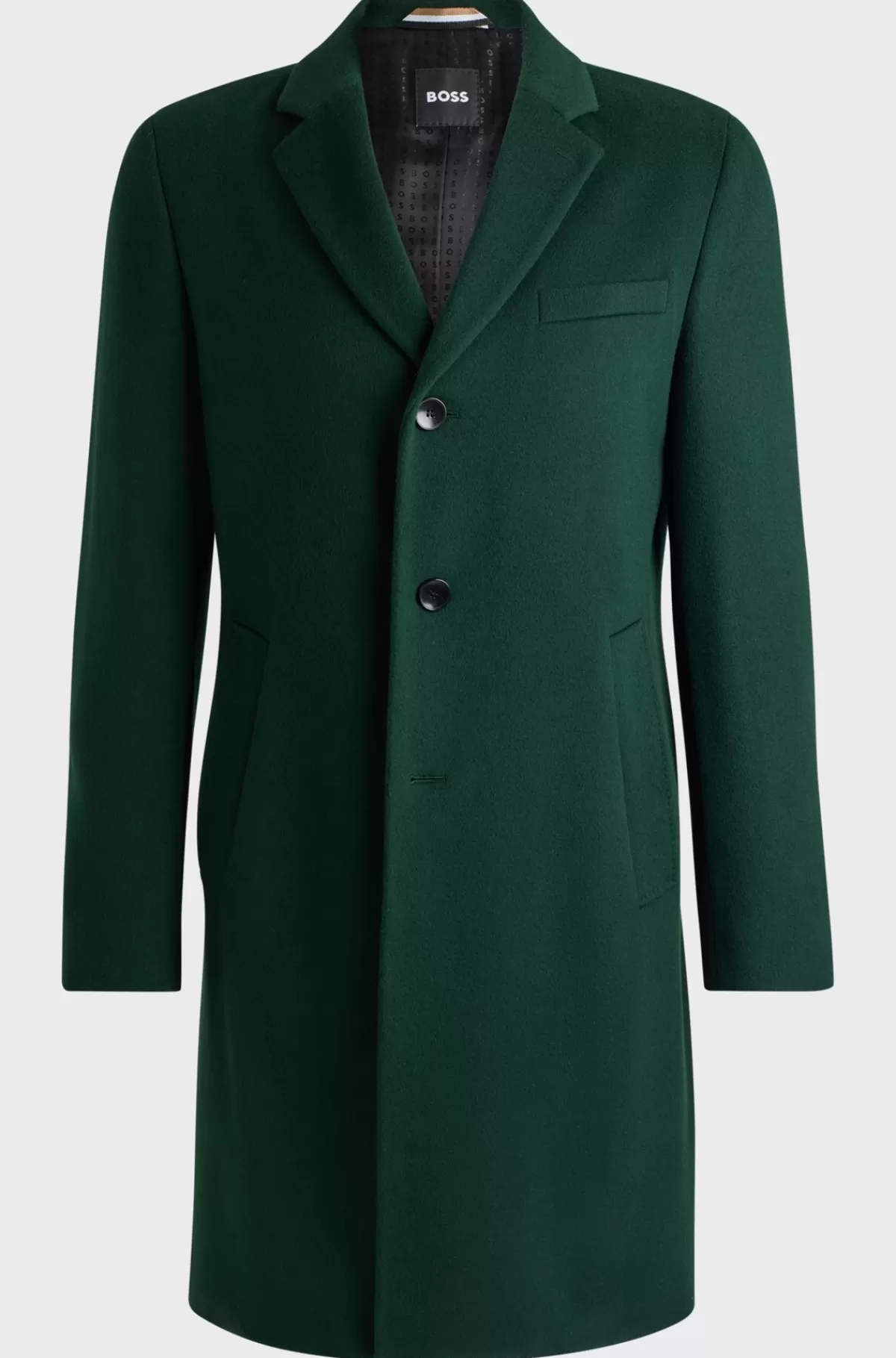 HUGO BOSS Frakke Med Slim Fit I Ny Uld Og Kashmir Mørkegrøn Shop