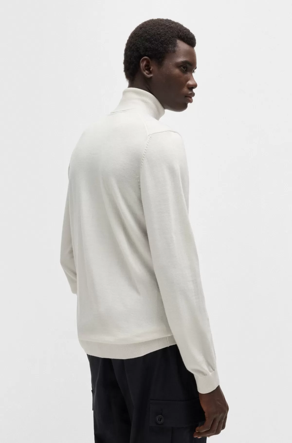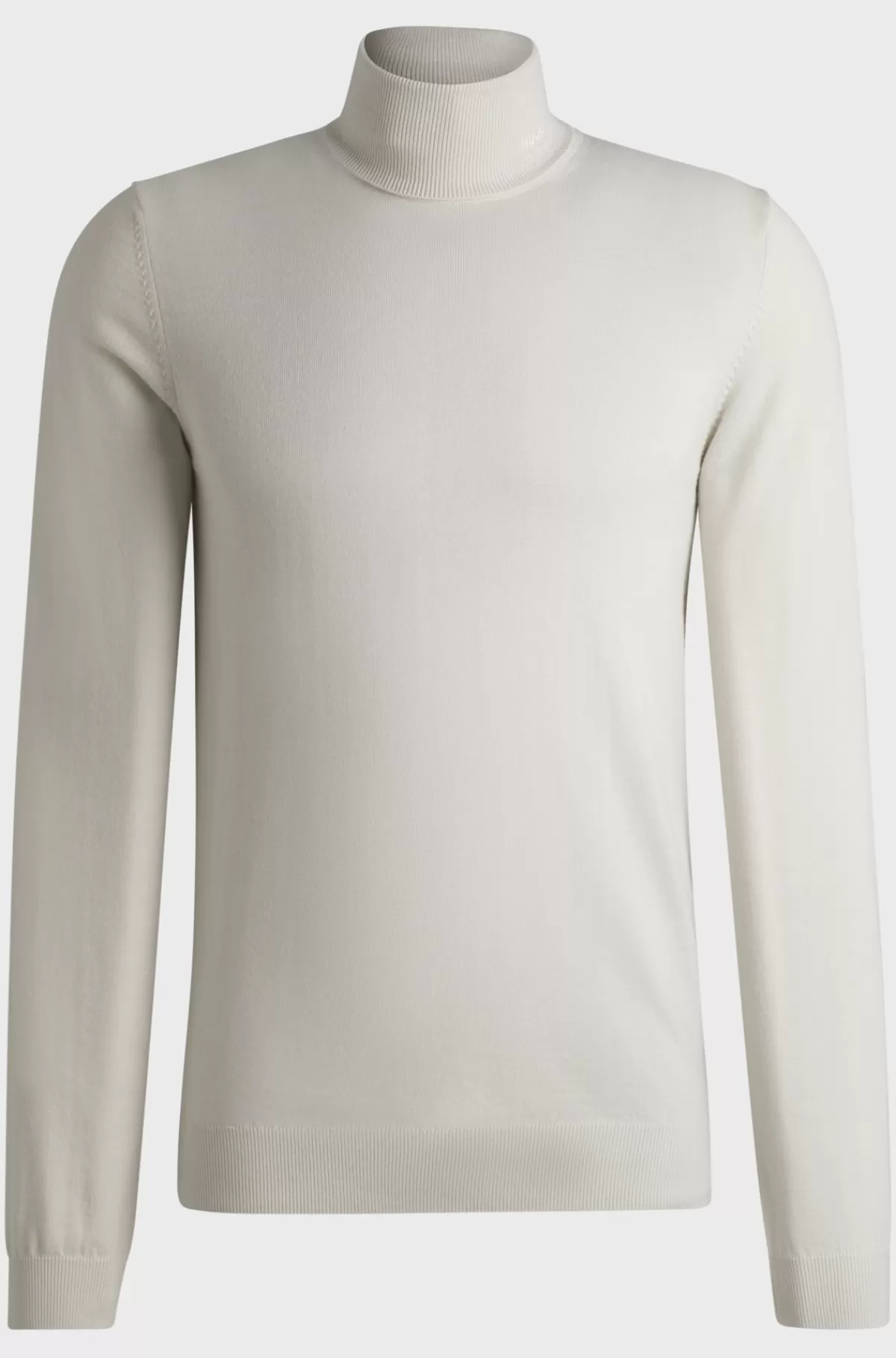 HUGO BOSS Regular Fit Rullekravesweater I Ny Uld Naturlig Discount