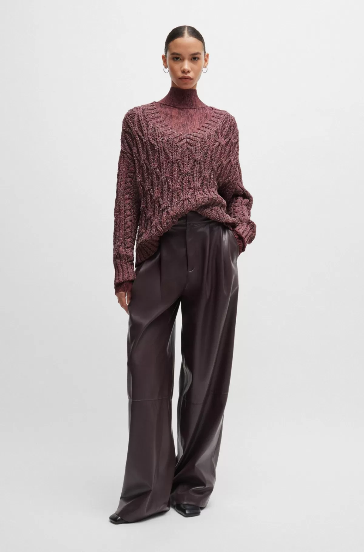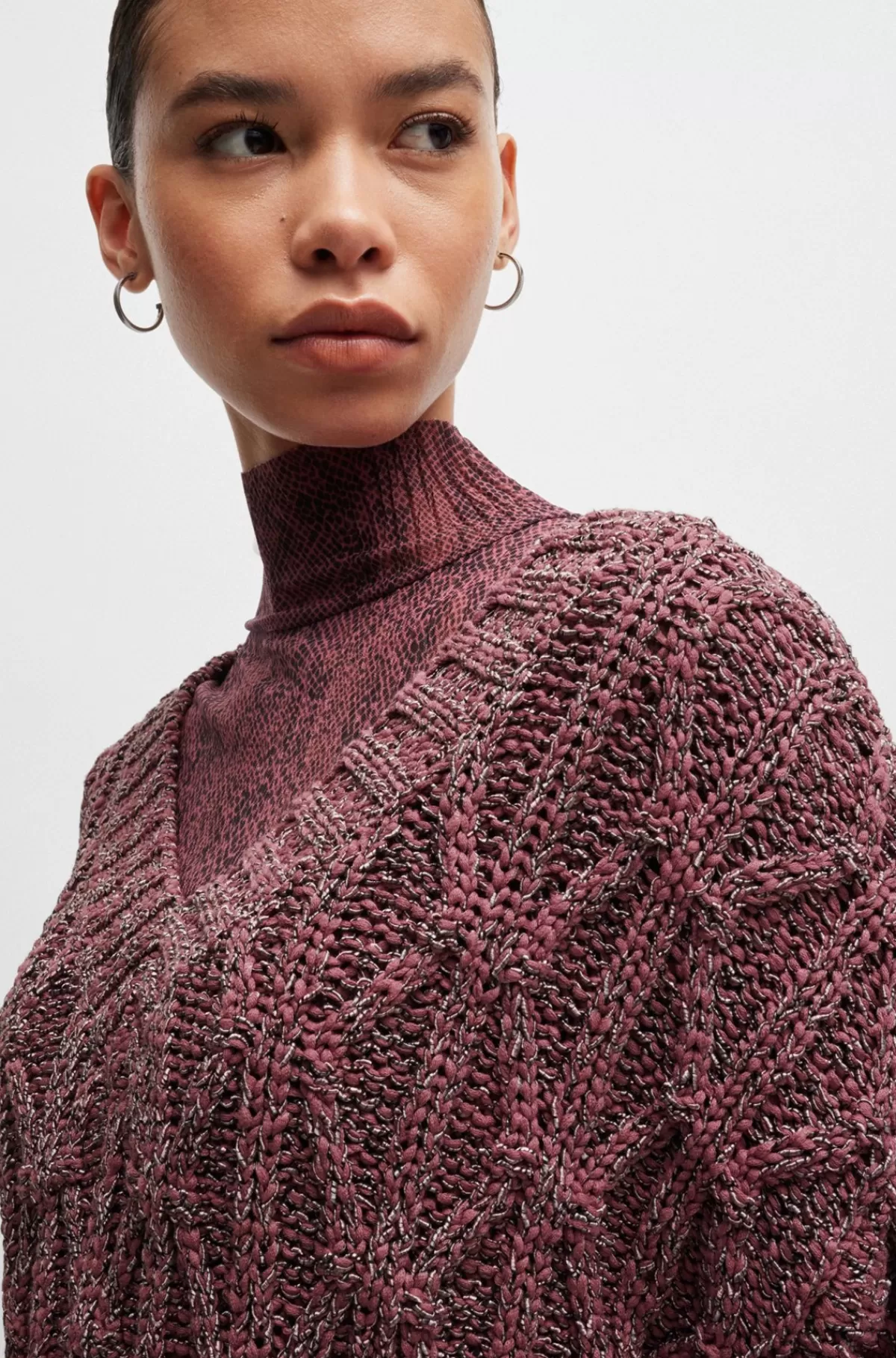 Moderne sweater med v-hals fra BOSS. Denne lune sweater er strikket med en kraftig struktur. Dette produkt er delvist lavet af økologisk bomuld. Vores standarder for økologi tillader ikke brug af syntetisk gødning, pesticider eller genmodificerede frø.