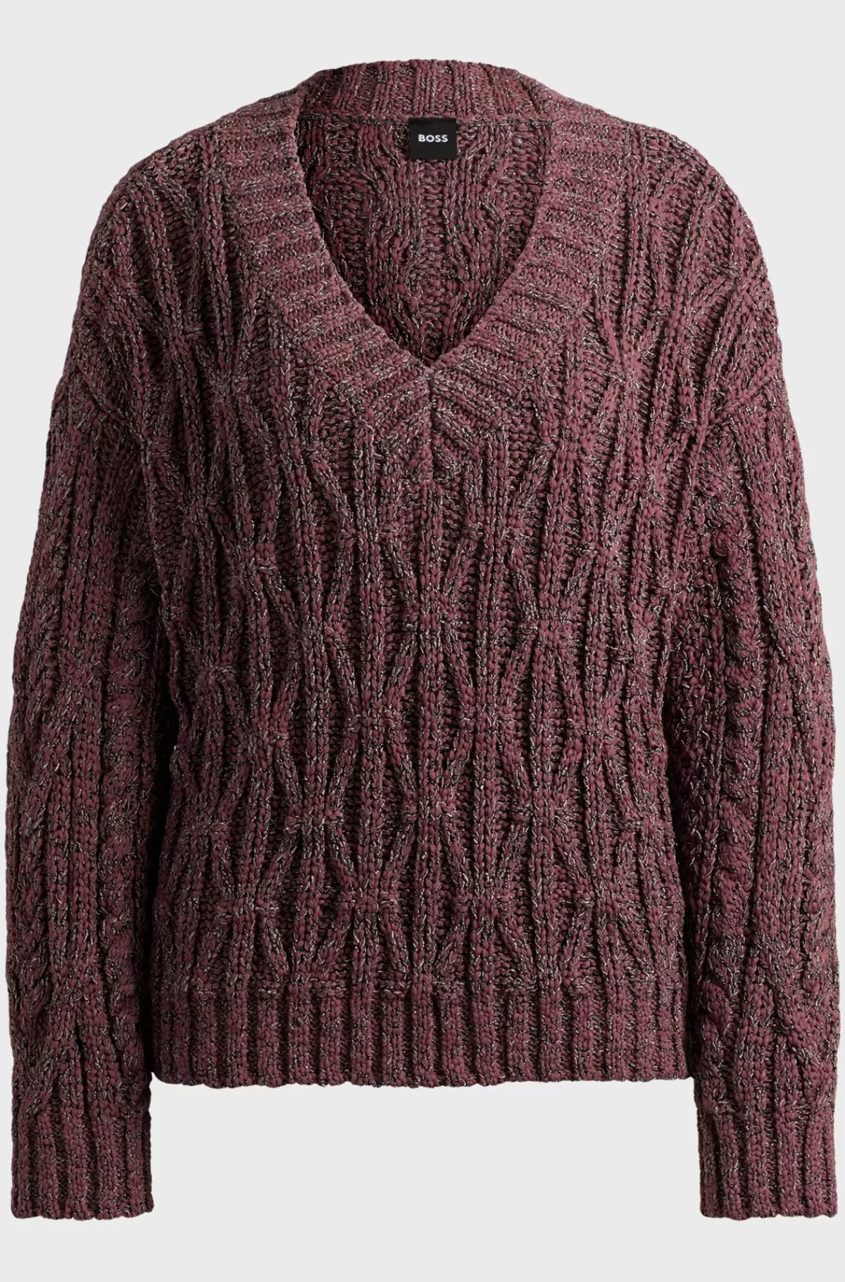 HUGO BOSS Sweater I Struktureret Strik Med V-hals Brun Fashion