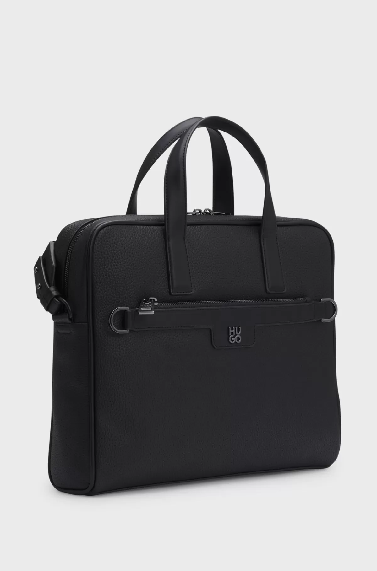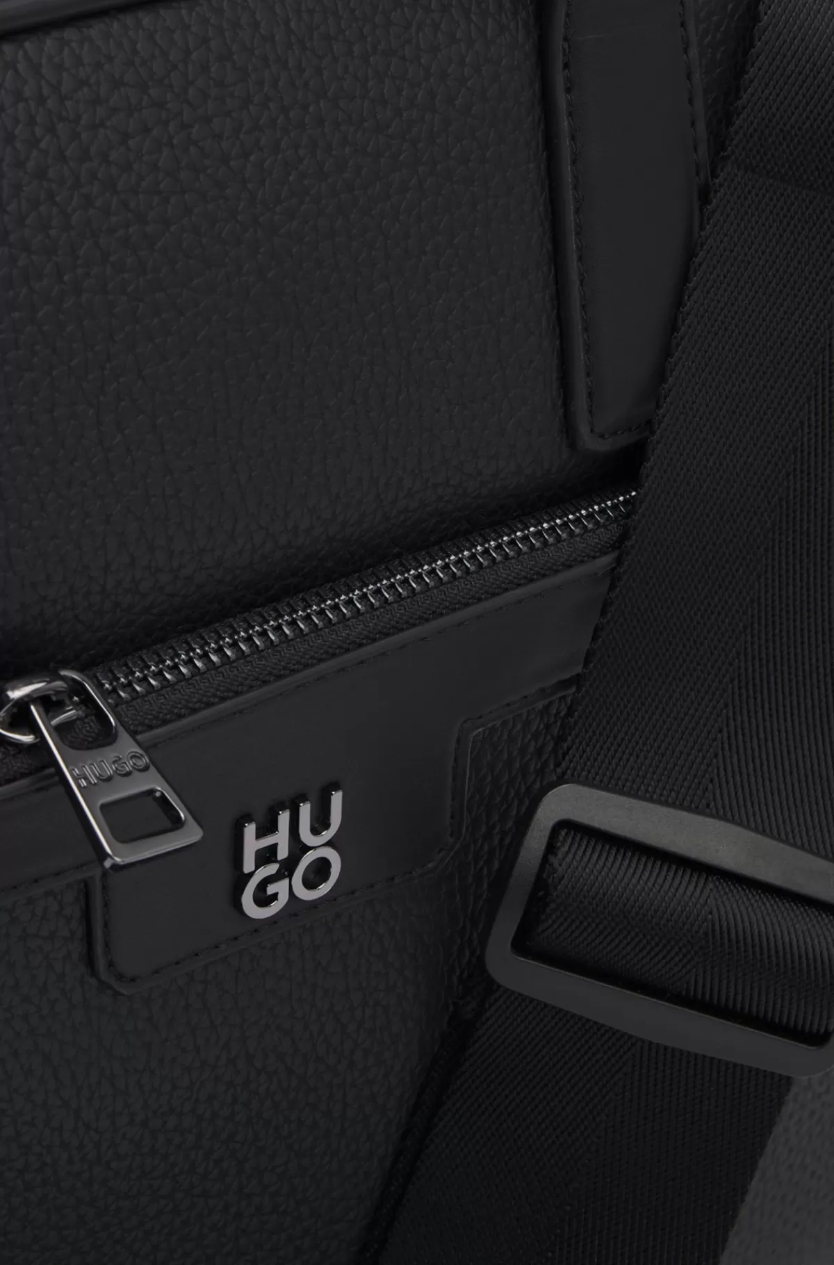 Moderne attachetaske med stablet logo fra HUGO. Den elegante accessory er lavet af syntetisk betrukket stof med struktur…