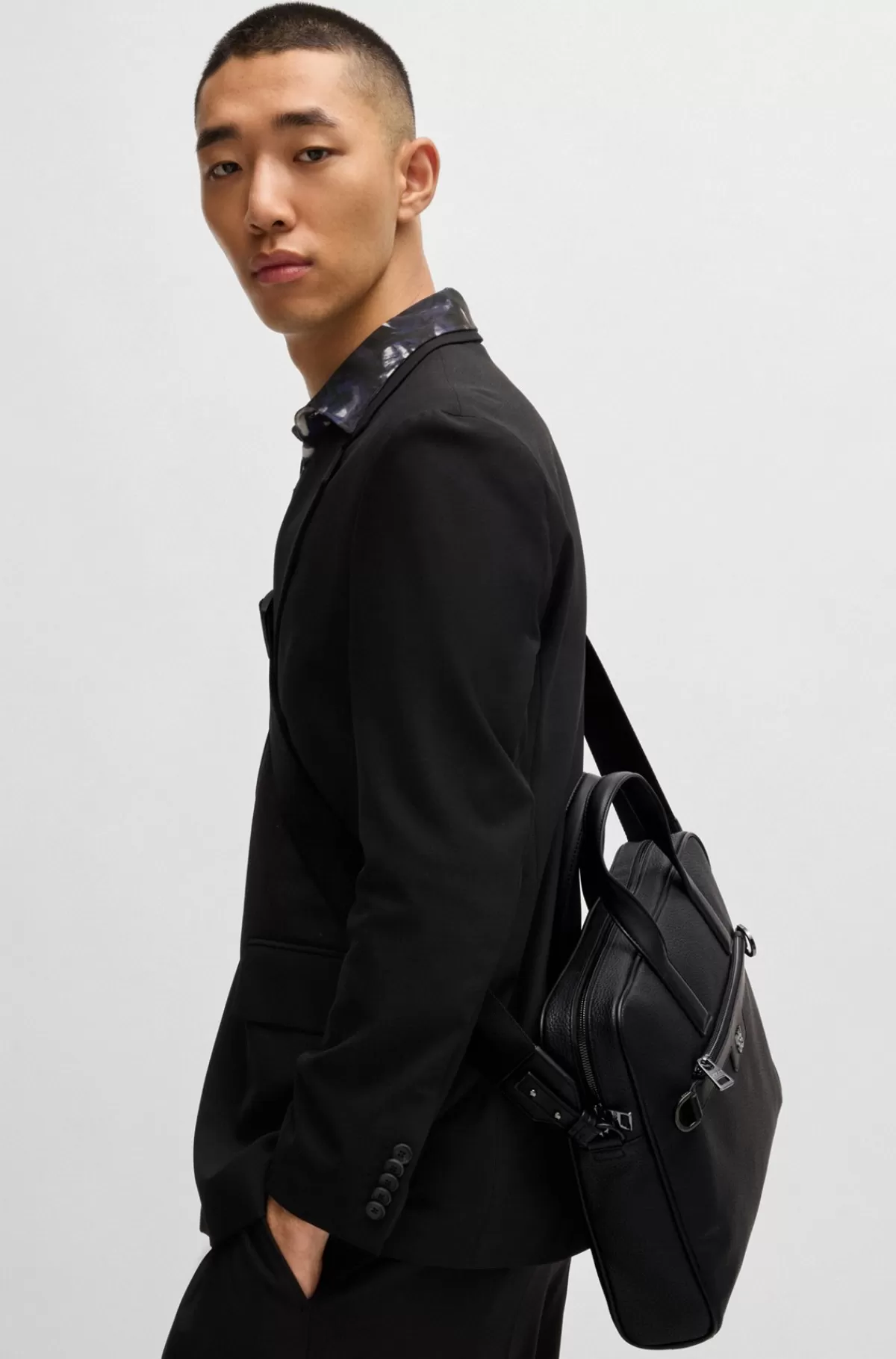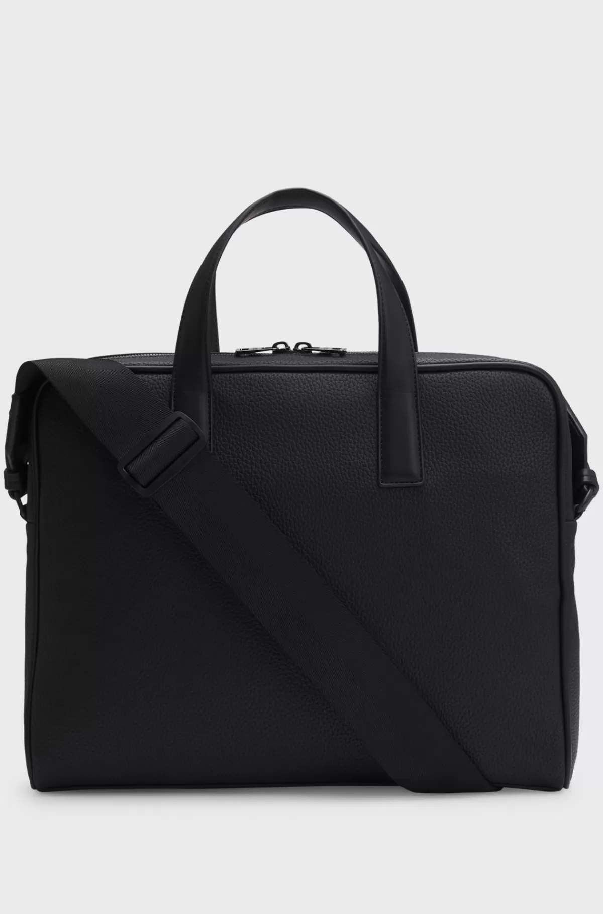 HUGO BOSS Attachetaske I Imiteret Narvlæder Med Stablet Logo Sort Outlet