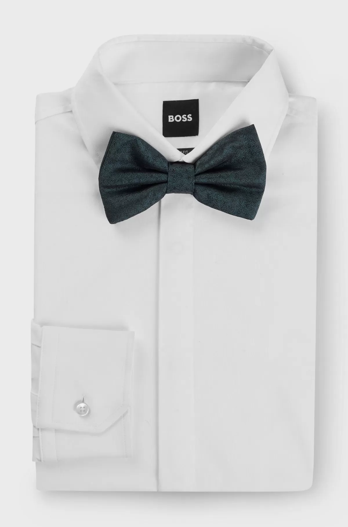 Raffineret butterfly fra BOSS. Denne accessory, der allerede er bundet, er lavet i en jacquardvævet silkeblanding med moderne mønster.