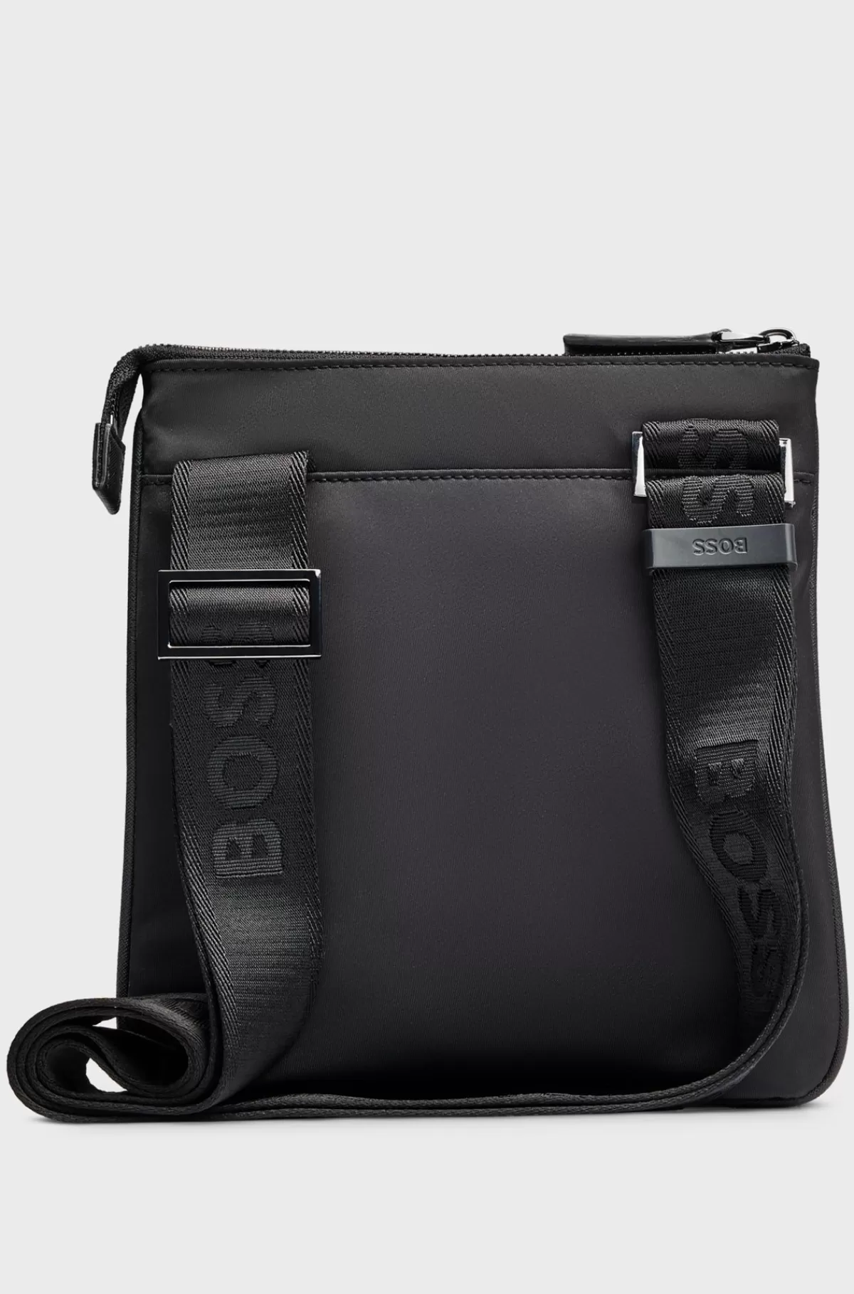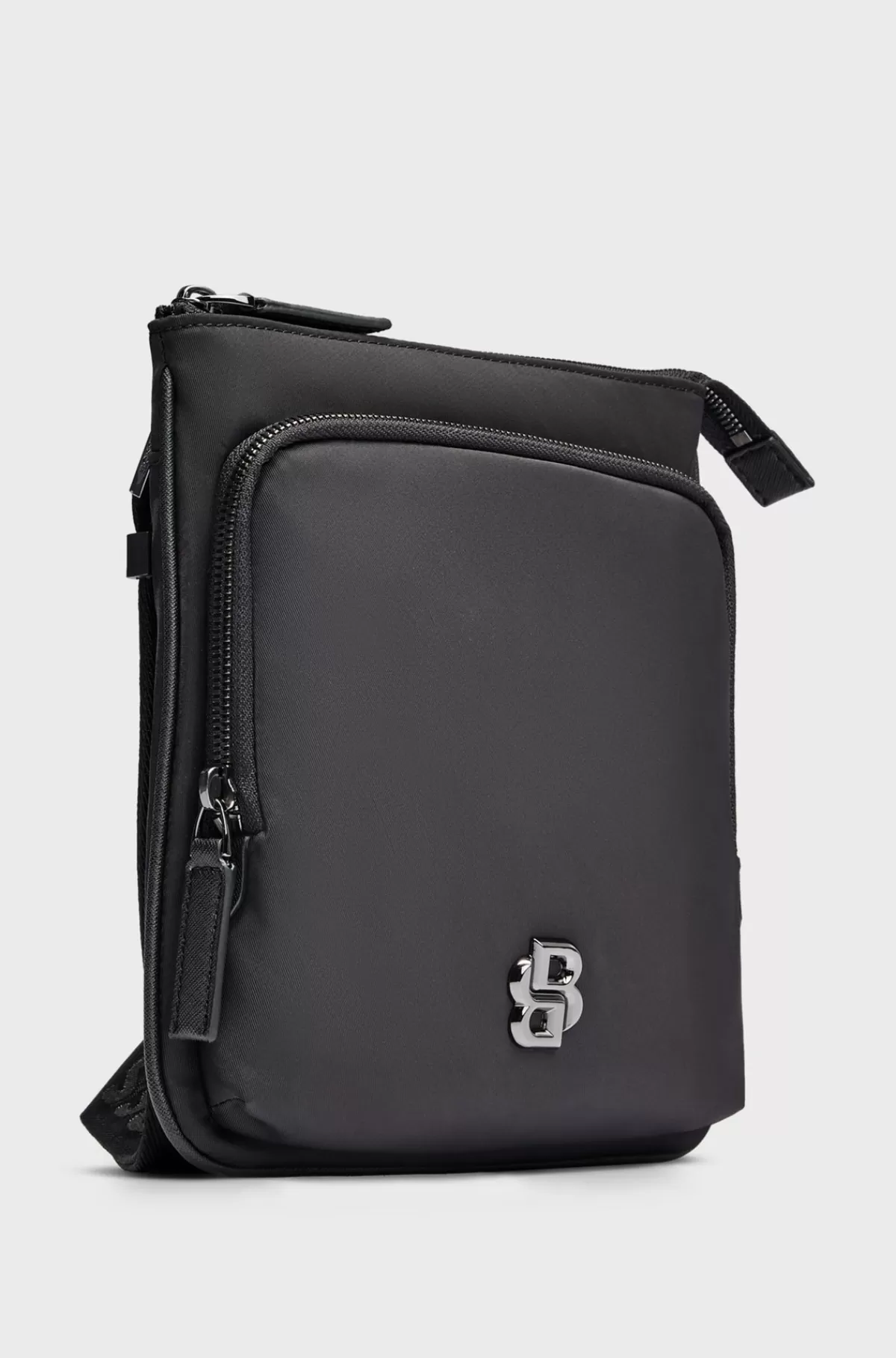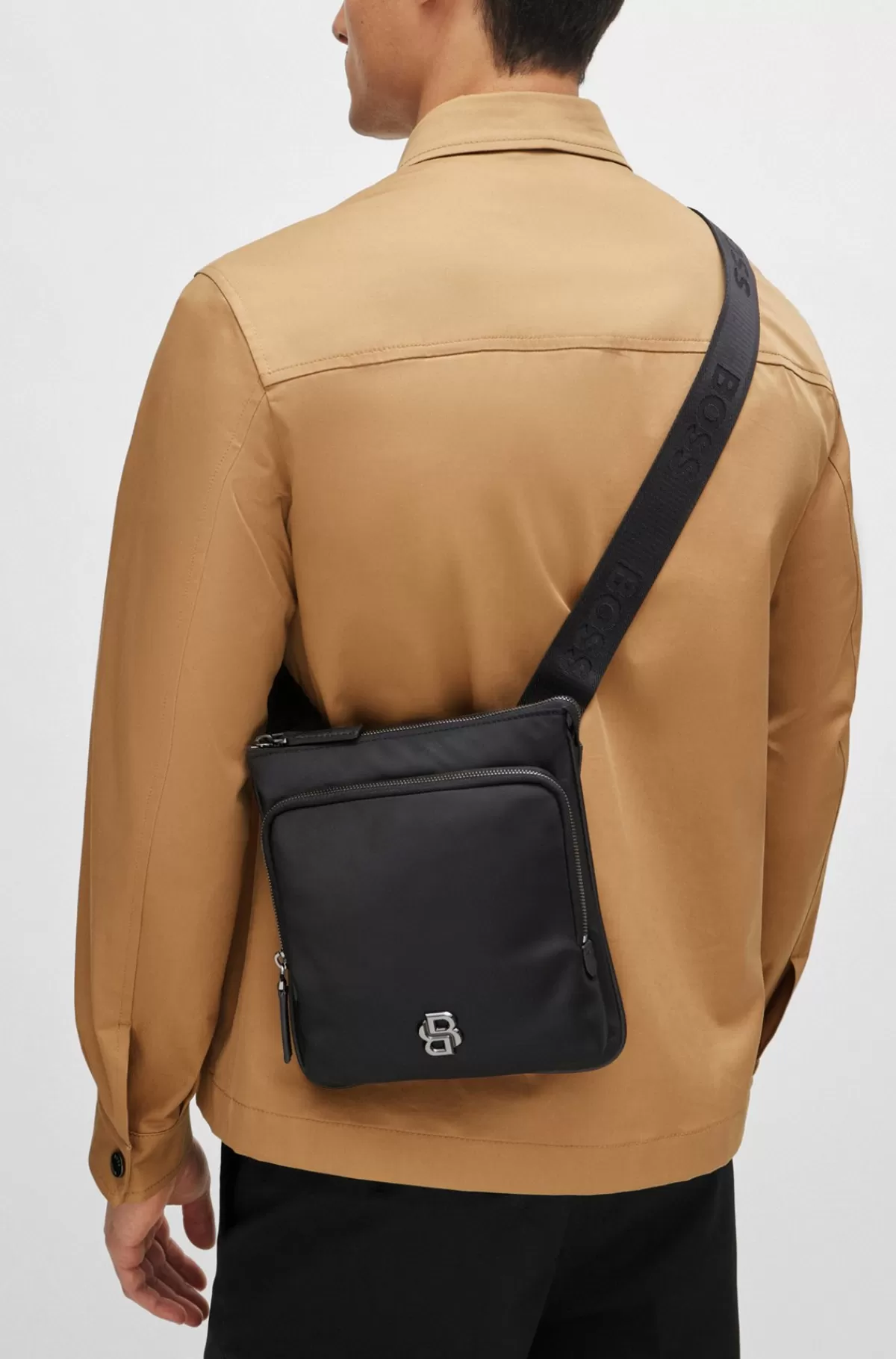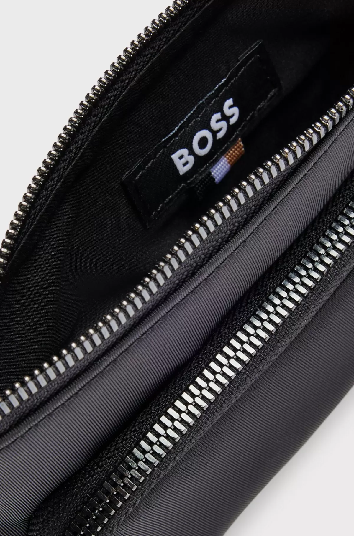 Underspillet envelopetaske fra BOSS, der er fremstillet i twillstof med en dobbelt monogramkant og polerede gunmetal. Vi…