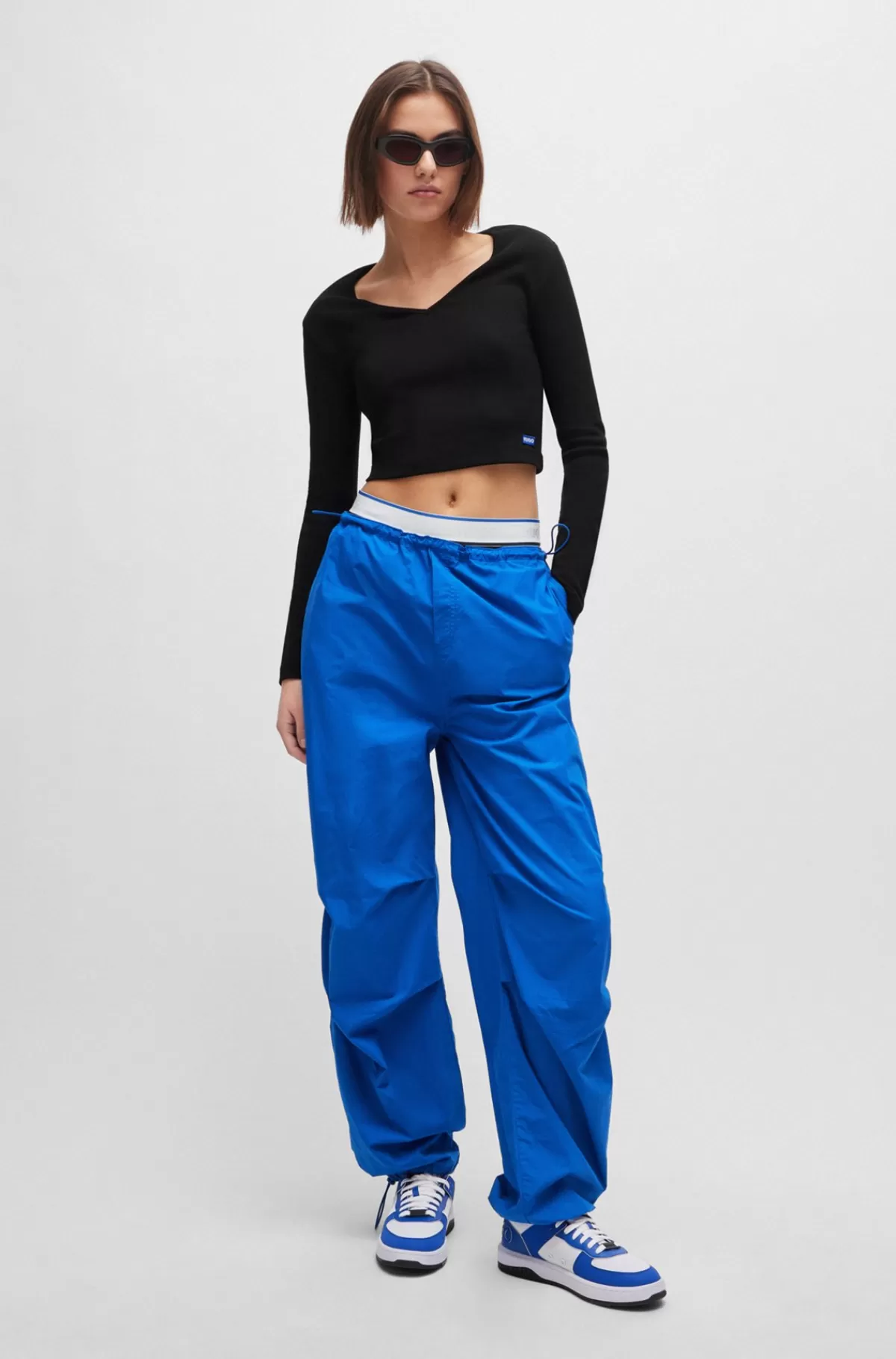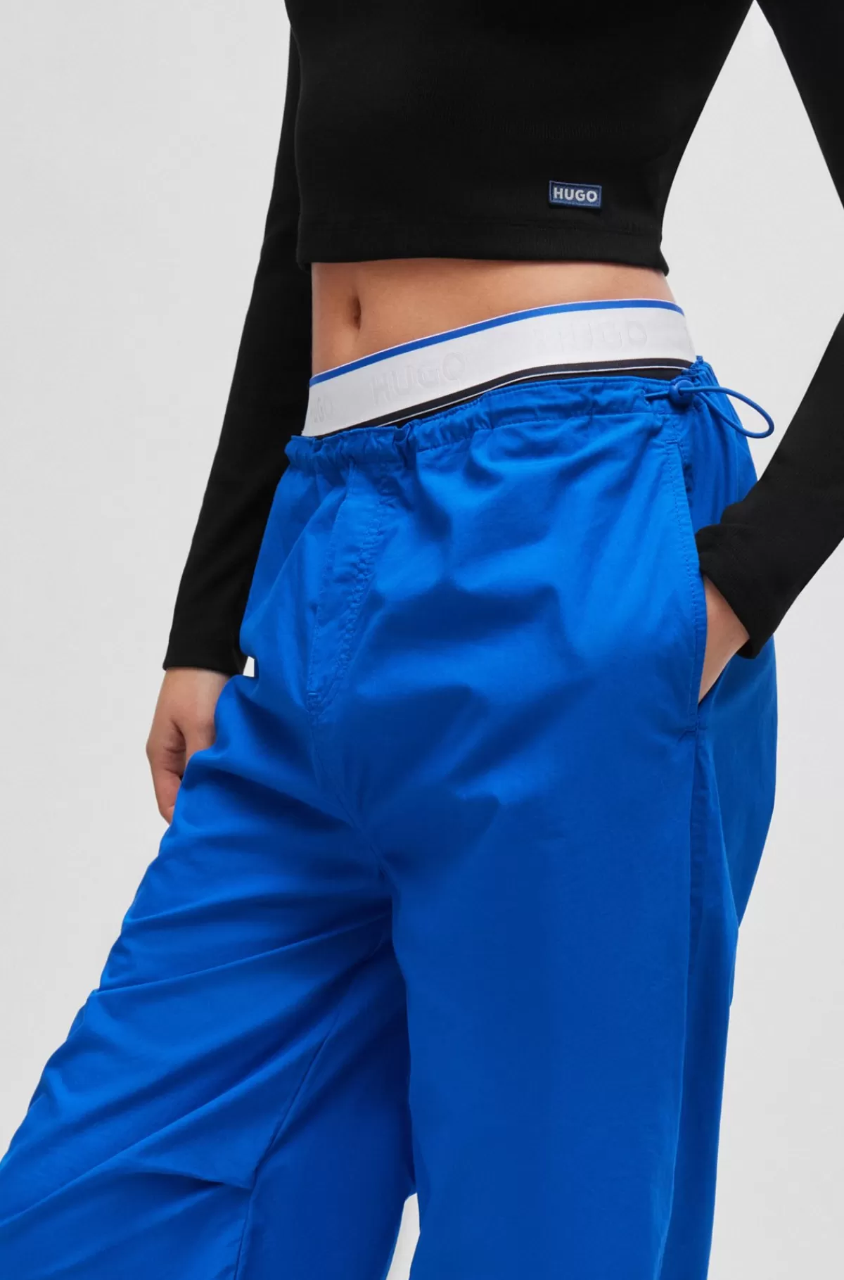 Trendy faldskærmsbukser fra HUGO Womenswear med baggy fit i ren bomuld med vide ben og justerbare snore.
