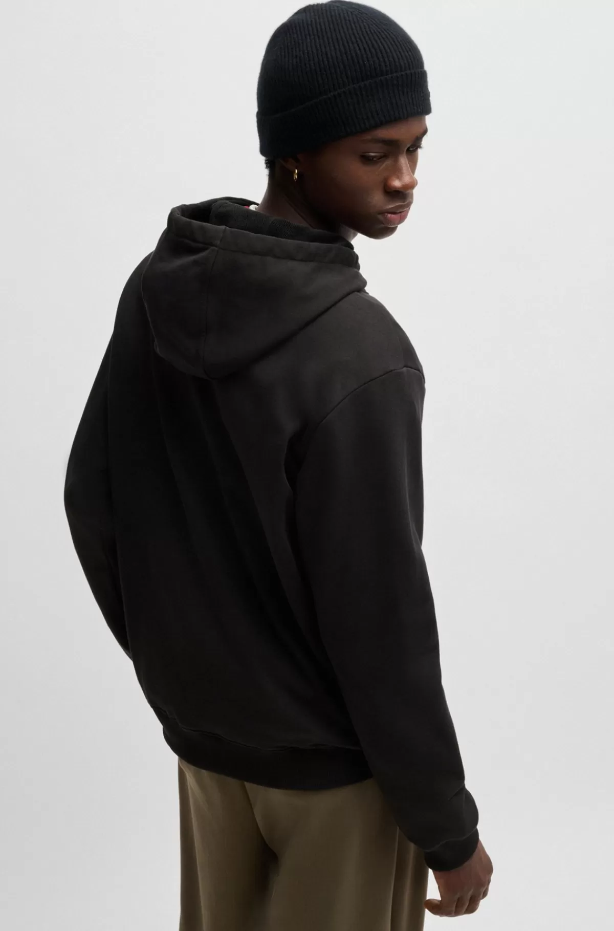 HUGO BOSS Hættetrøje I Bomuldsfrotté Med Stablet Logoprint Sort Cheap
