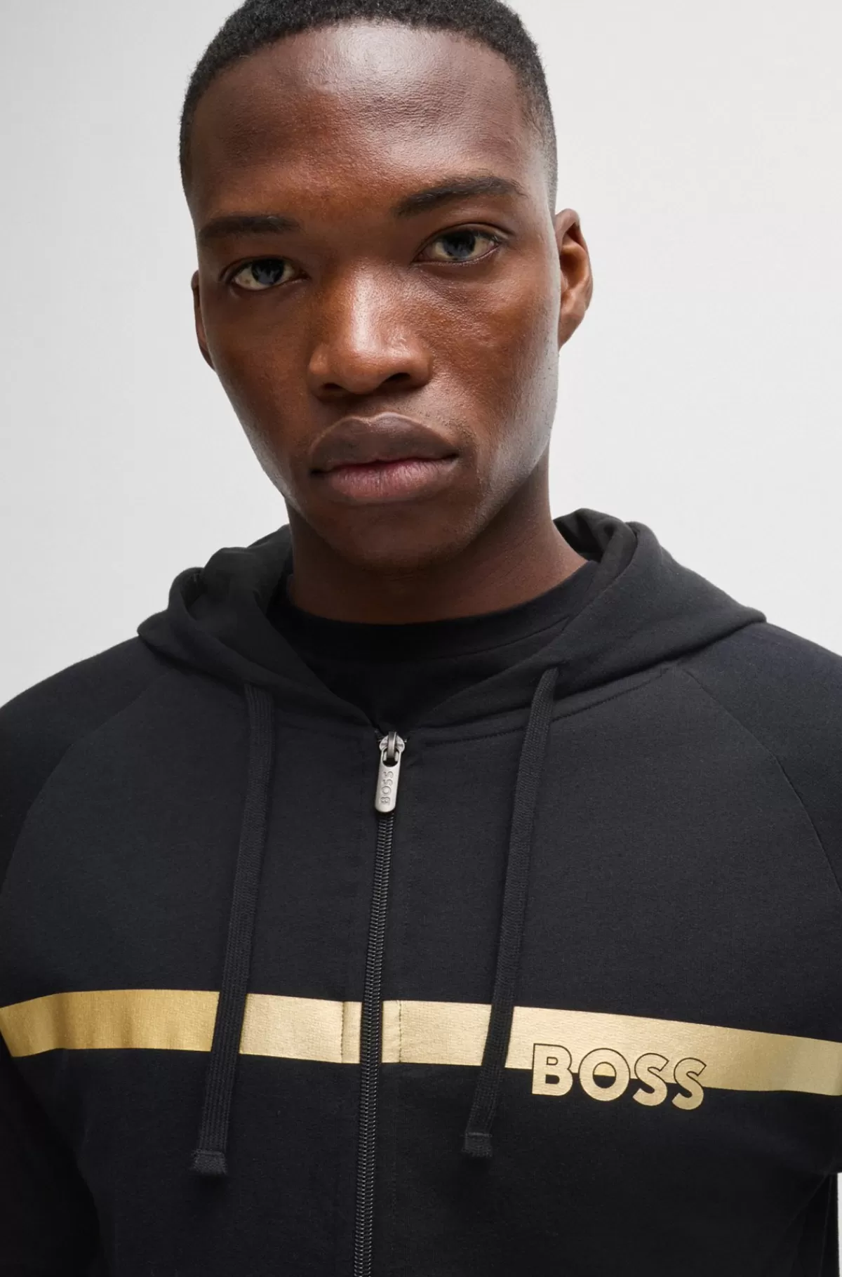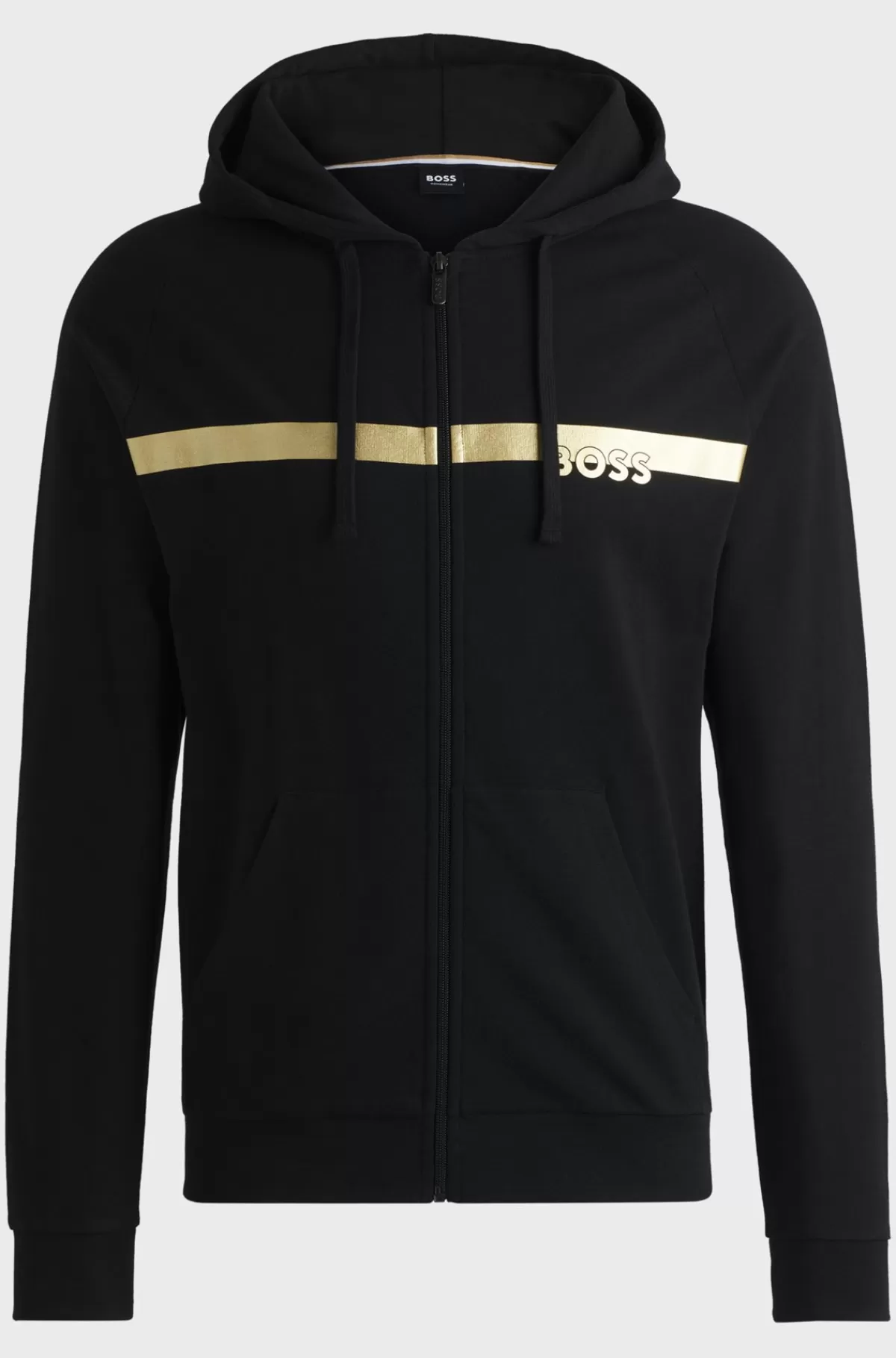 HUGO BOSS Hættetrøje I Sweatkvalitet Af Bomuld Med Folieprintet Logo Sort Sale