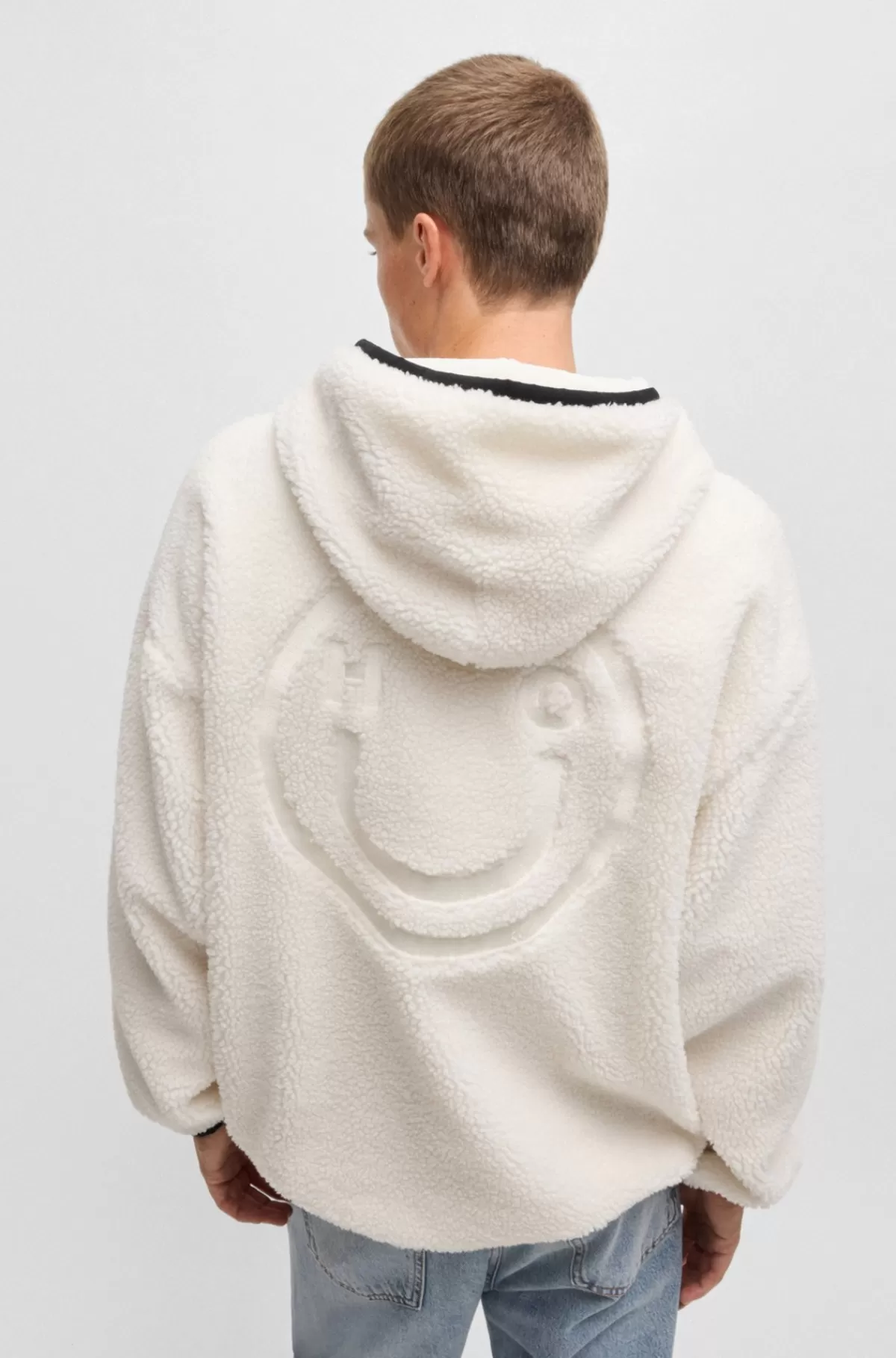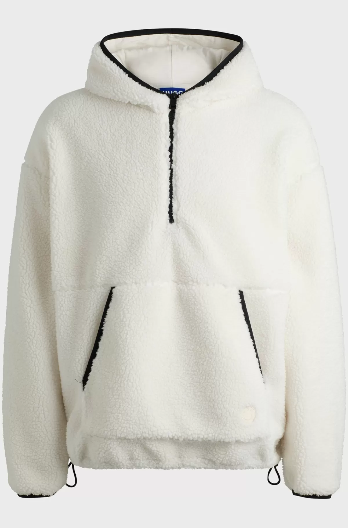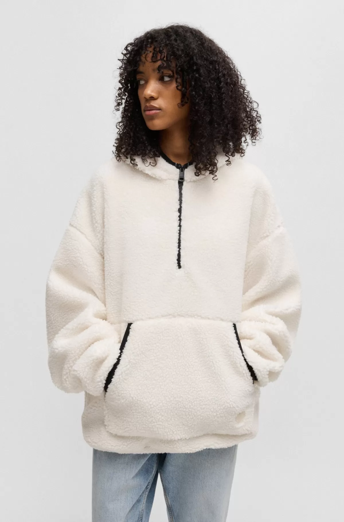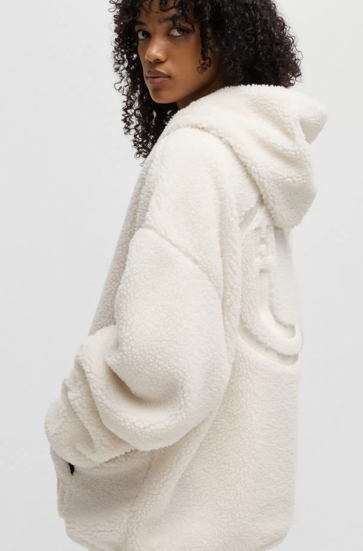 HUGO BOSS Hættetrøje Med Lynlås I Halsen I Teddystof Med Logo Hvid Outlet