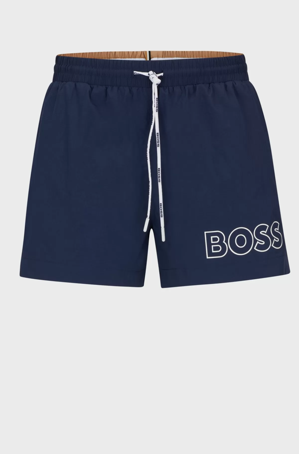 HUGO BOSS Hurtigtørrende Svømmeshorts Med Omridslogo Mørkeblå Discount