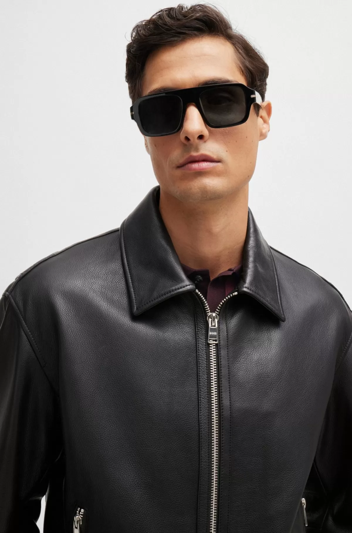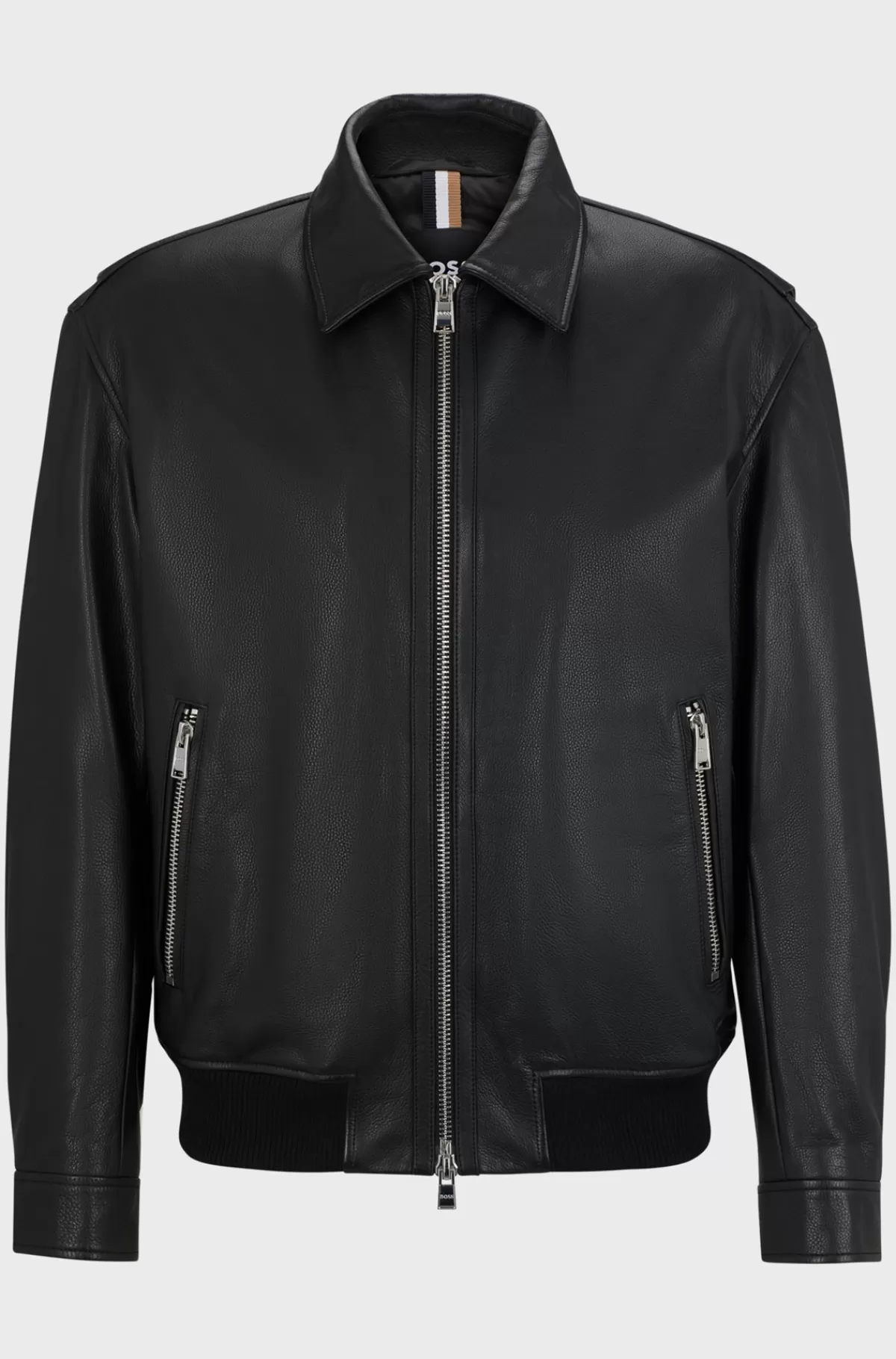 En raffineret jakke med straight fit fra BOSS Menswear. Denne jakke er lavet i læder og har en tovejs lynlås midt foran. Vi søger kontinuerligt efter mere ansvarlige måder, hvorpå vi kan producere og fuldende vores produkter. Minimum 60 % af det læder, der er brugt til at lave dette produkt, kommer fra certificerede garverier.