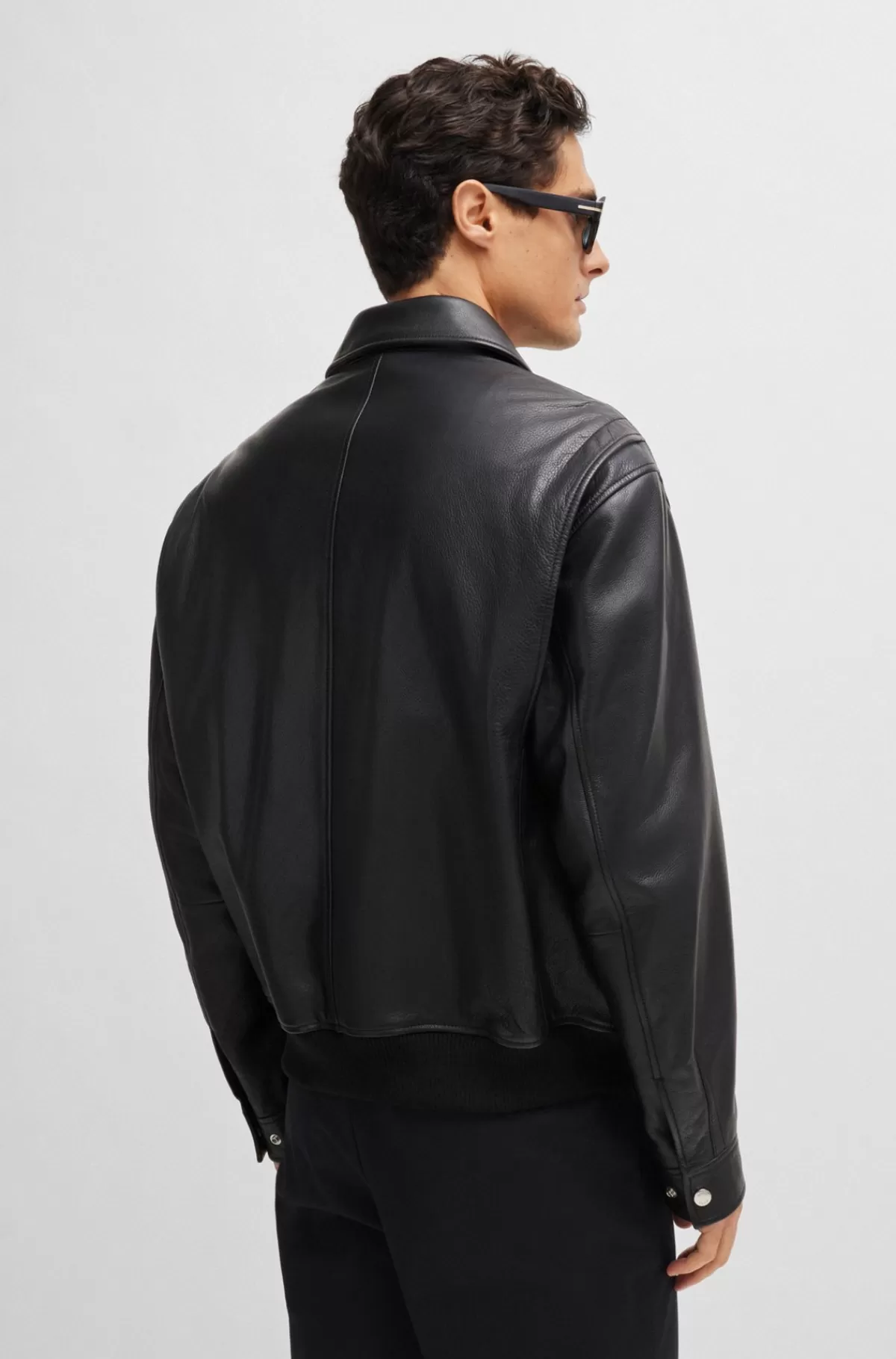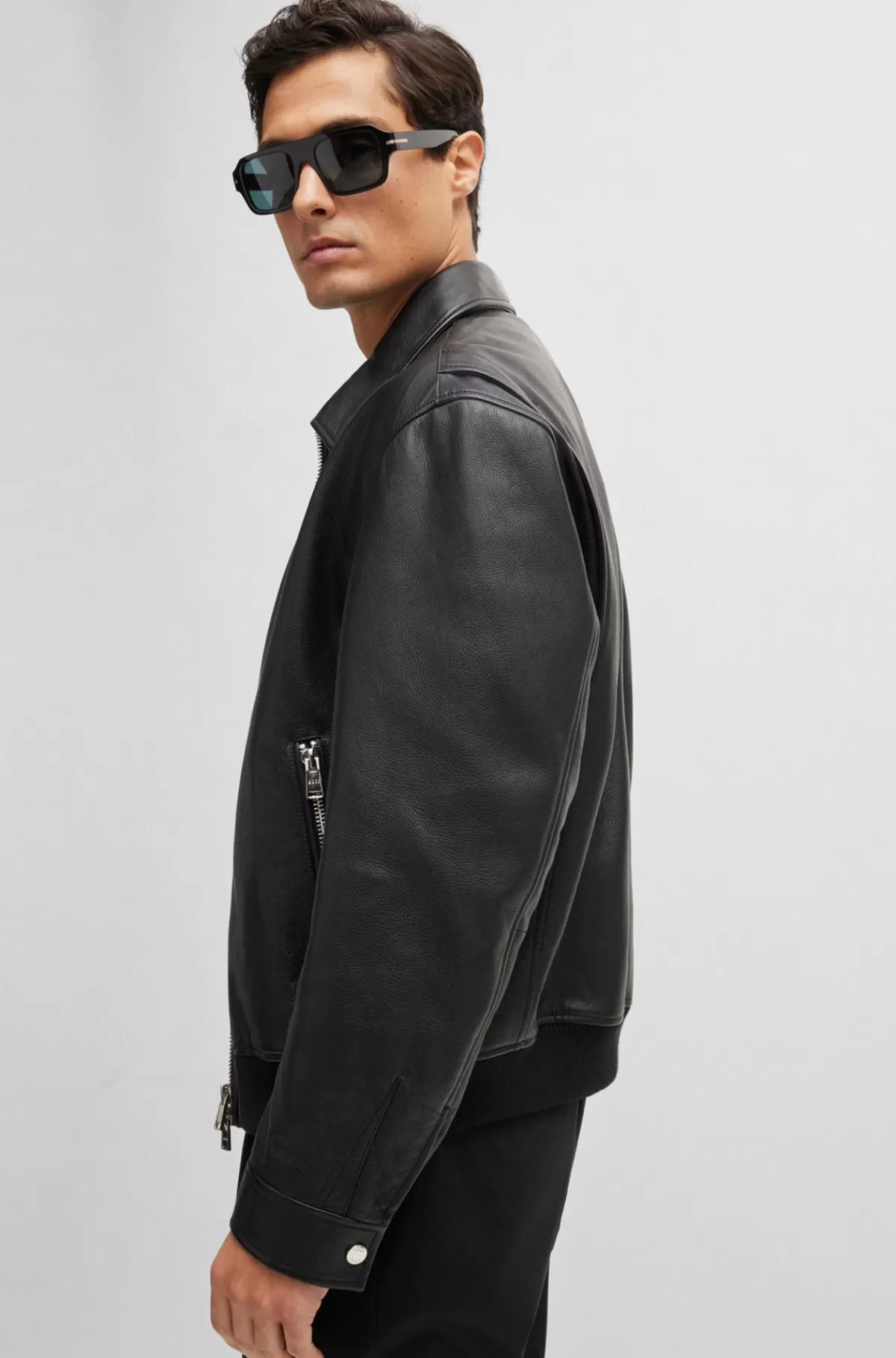 HUGO BOSS Jakke Med Regular Fit I Blødt Læder Med Kinakrave Sort Best Sale