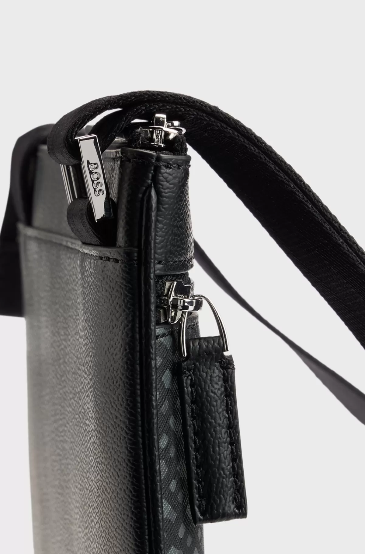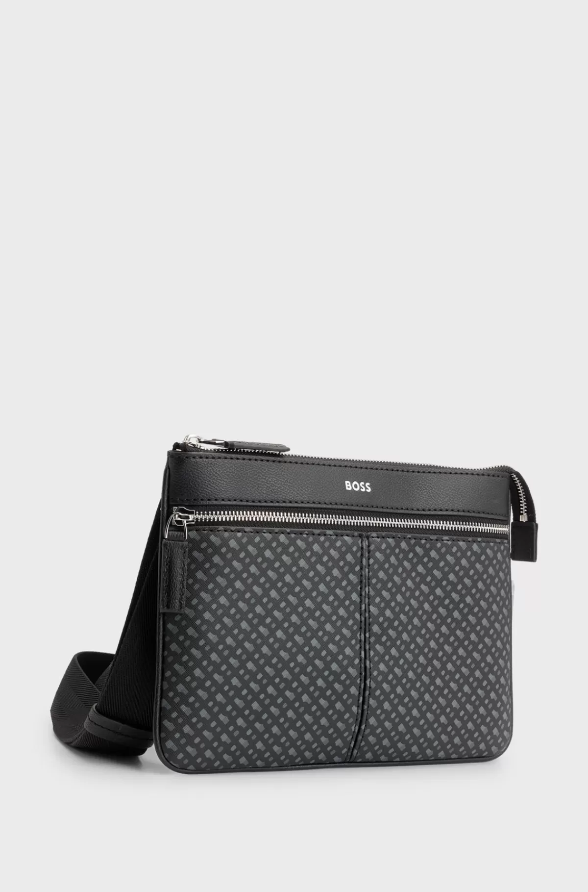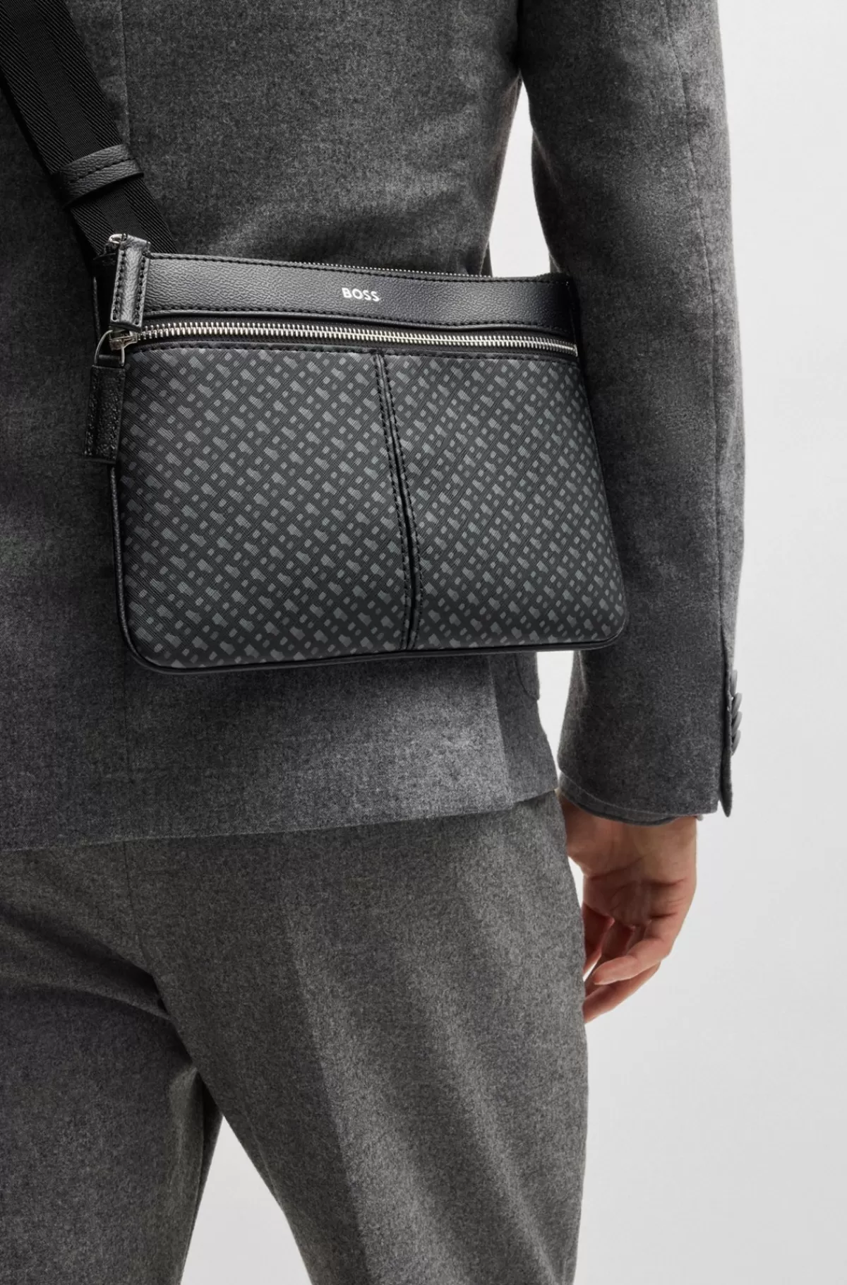HUGO BOSS Kuverttaske Med Monogrampanel Og Logo I Sølvfolie Sort mønstret Hot