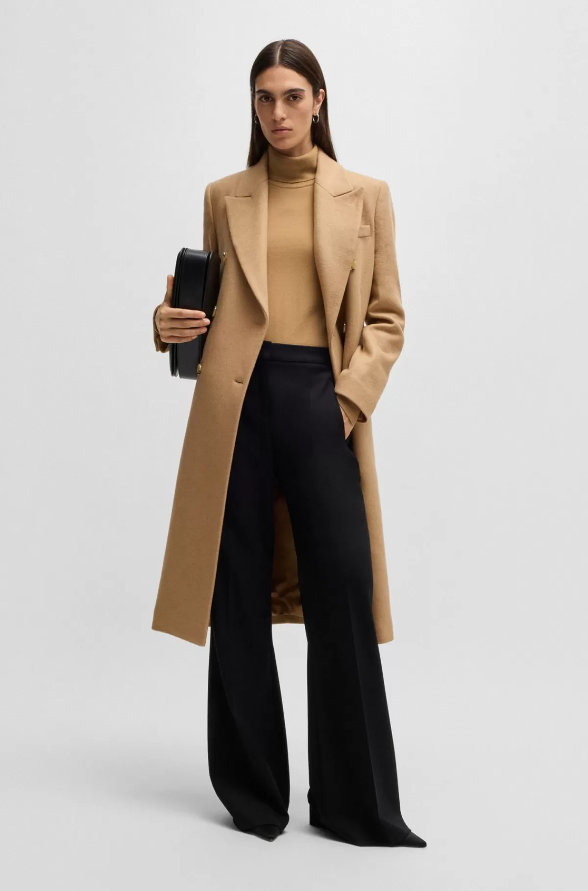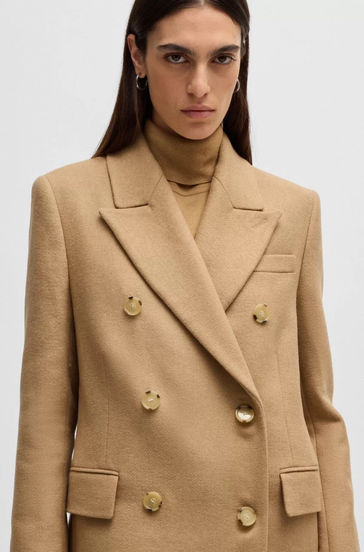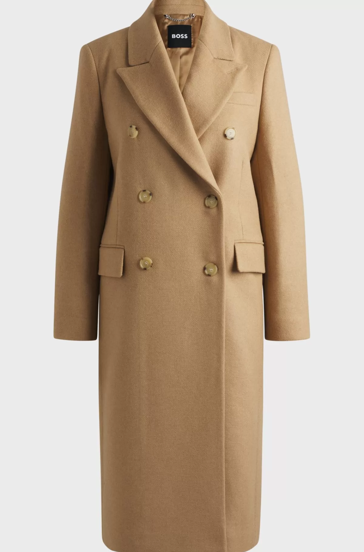 Alsidig formel frakke fra BOSS med dobbeltradet lukning. Denne lange frakke er lavet i blød twill i en blanding med uld…