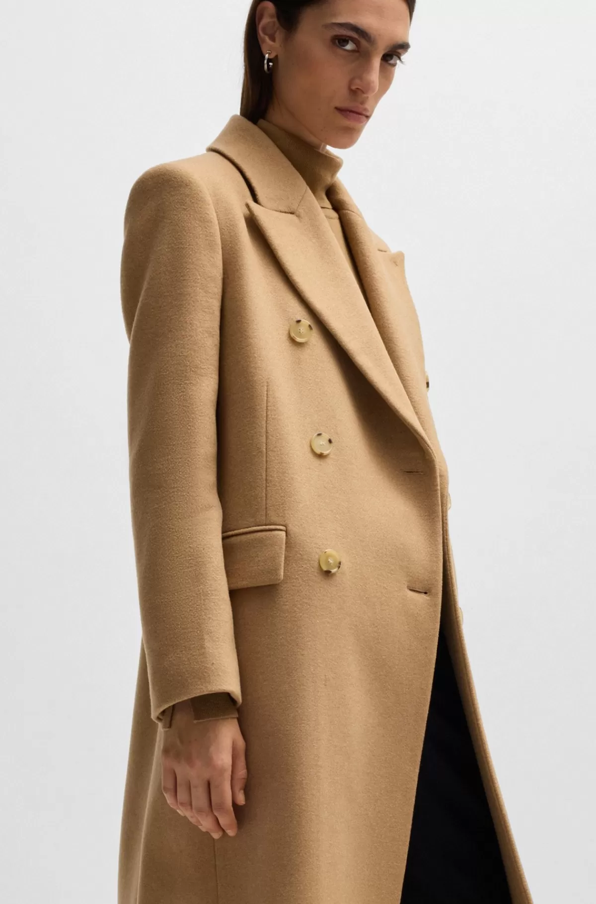 HUGO BOSS Lang Twillfrakke Med Dobbeltradet Lukning Lysebrun Cheap