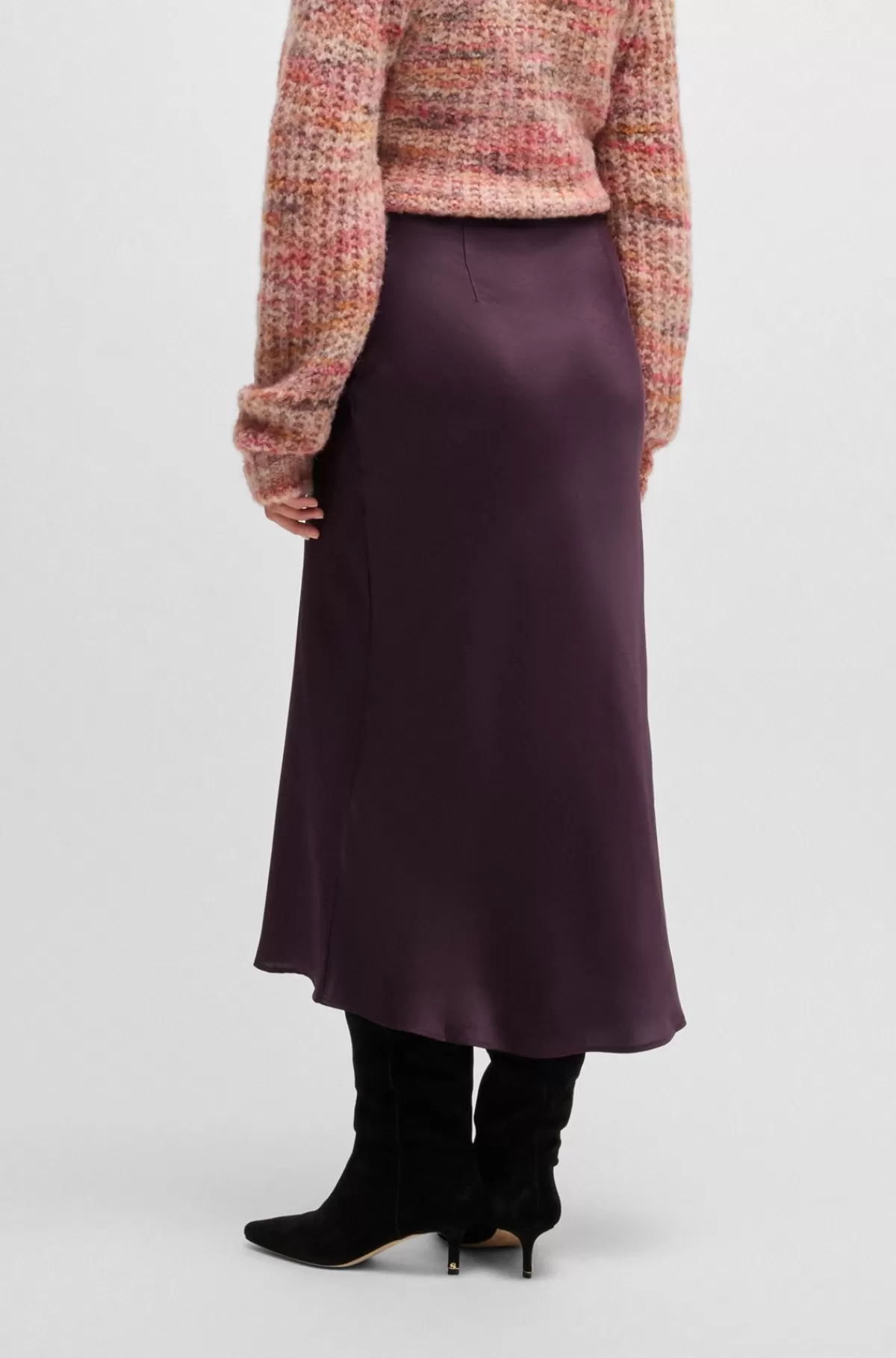 HUGO BOSS Midinederdel I Satin I A-form Og Regular Fit Mørklilla Cheap