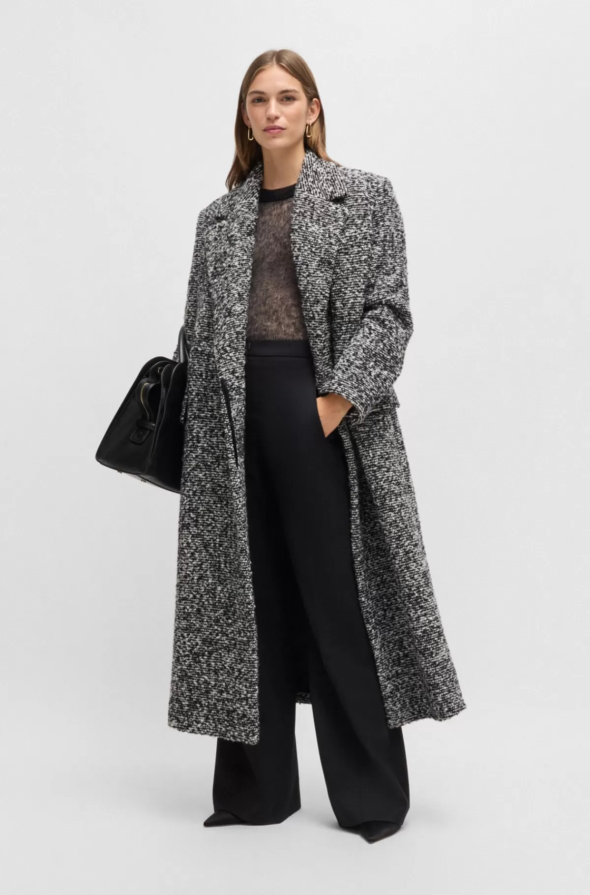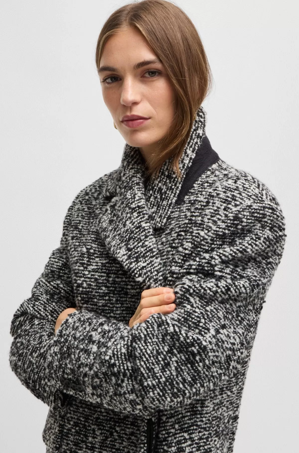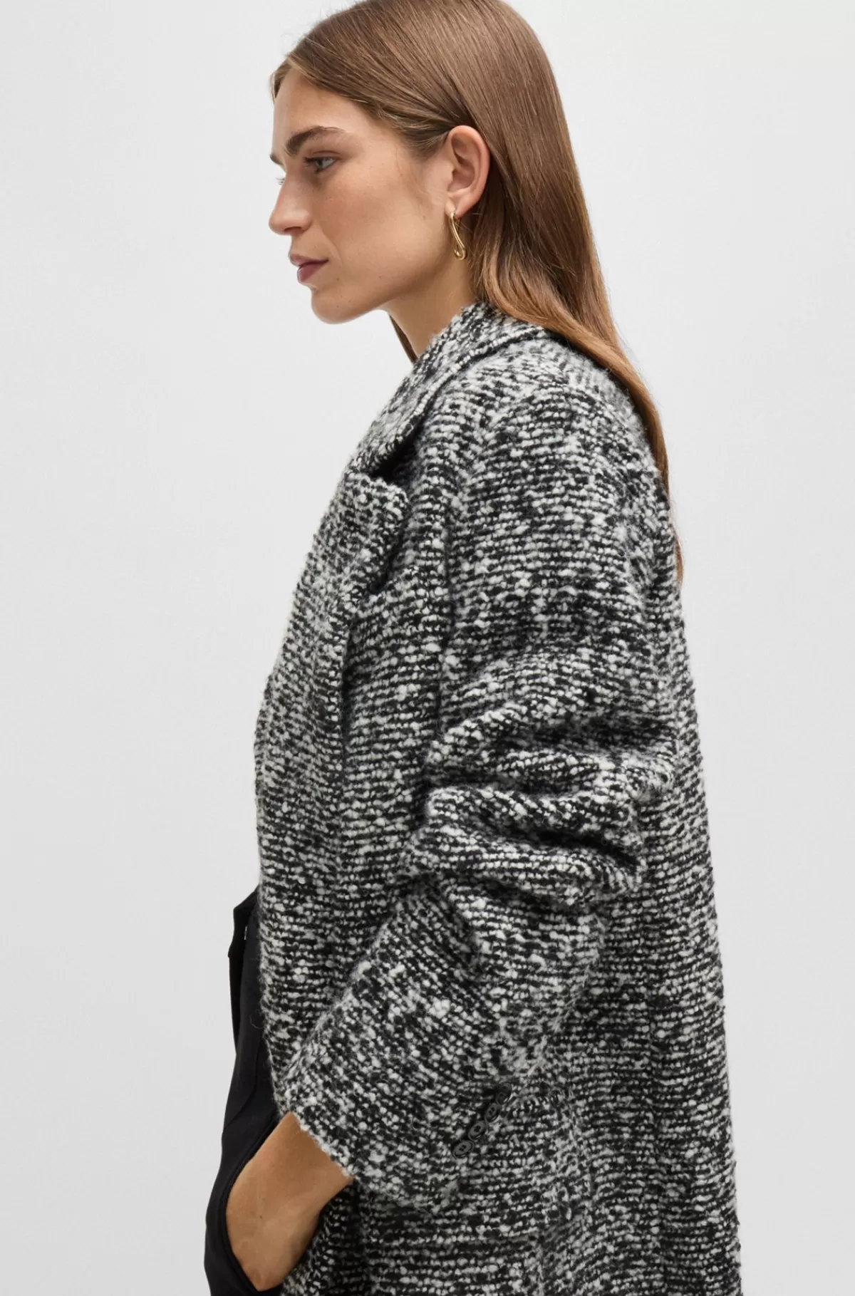 HUGO BOSS Oversize Fit Frakke I Bouclé-tweed Mønstret Flash Sale