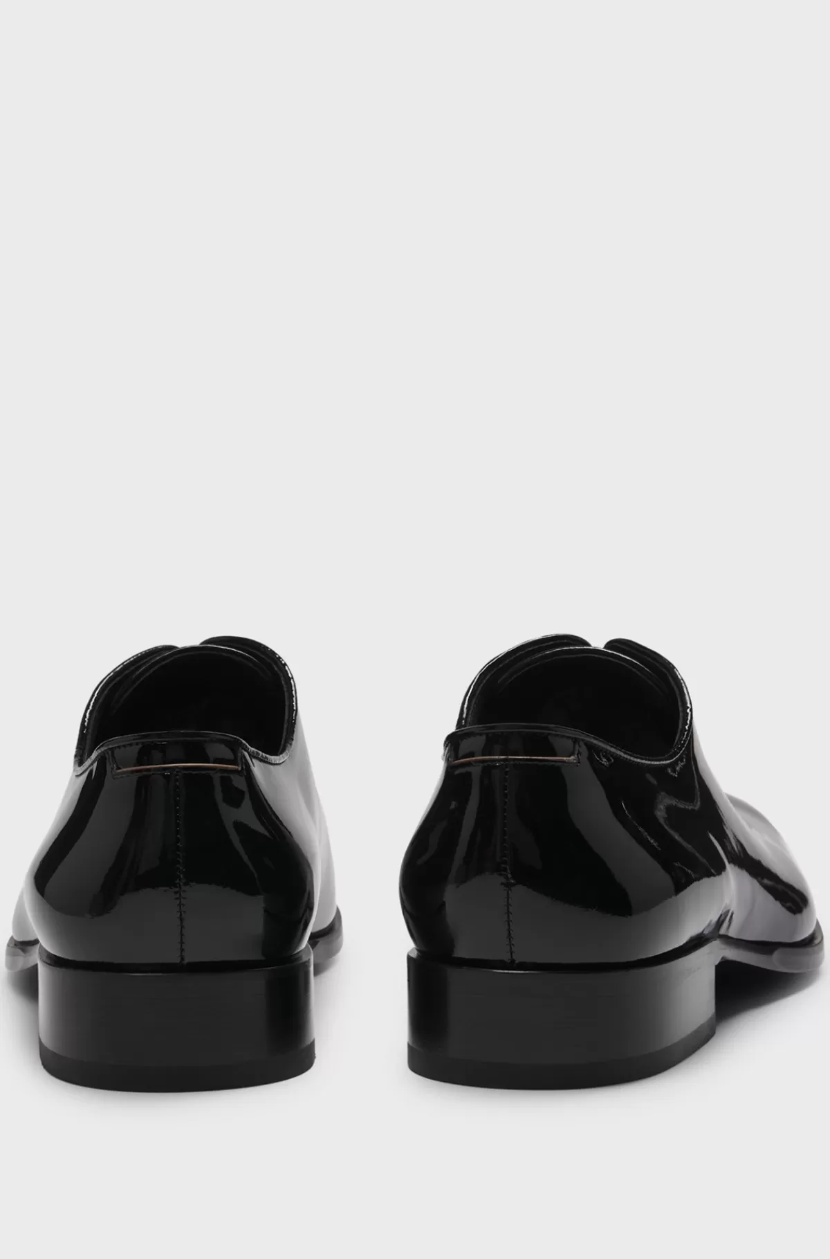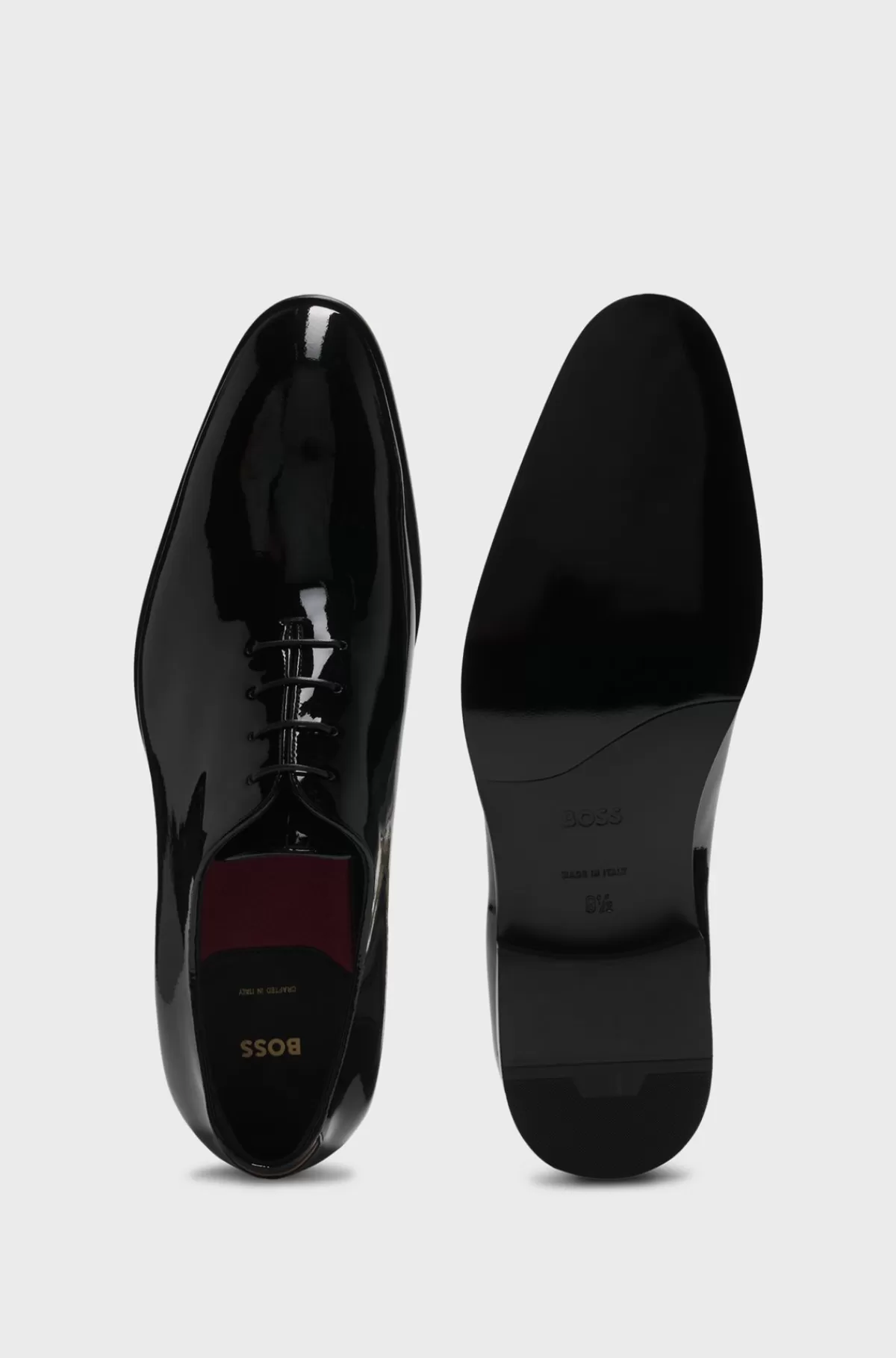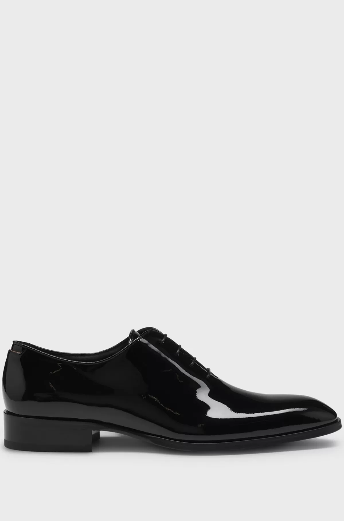 Elegante oxfordsko med signaturdetalje på hælen og paspolering i kanten fra BOSS. Dette par italiensk fremstillede sko er lavet i blankt patentlæder.