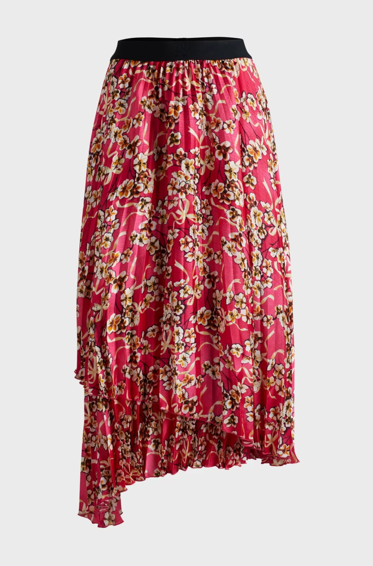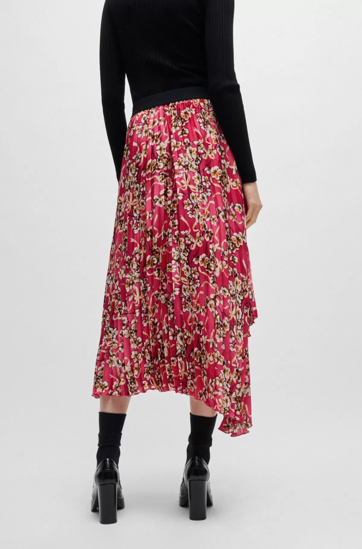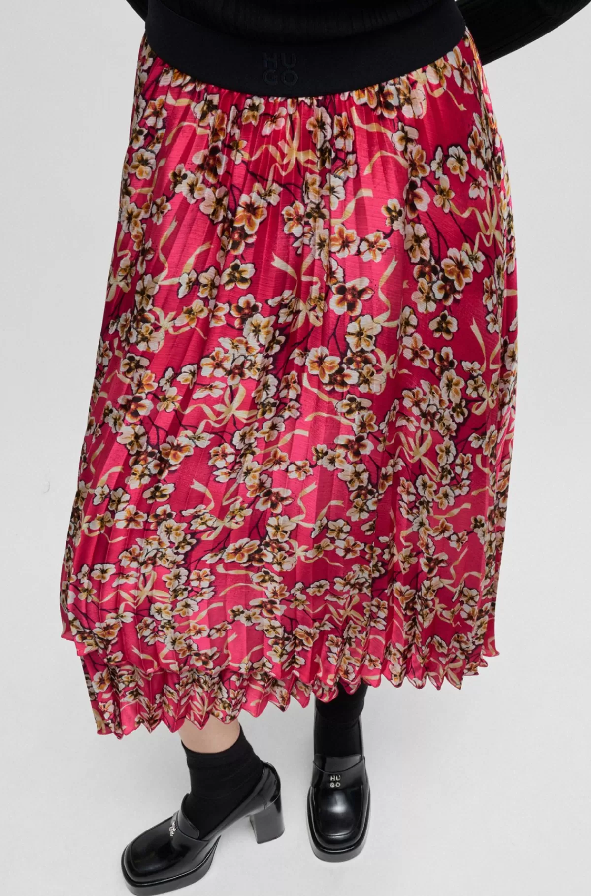 HUGO BOSS Plisseret Nederdel I Flere Niveauer Med Blomsterprint Rød mønstret Cheap