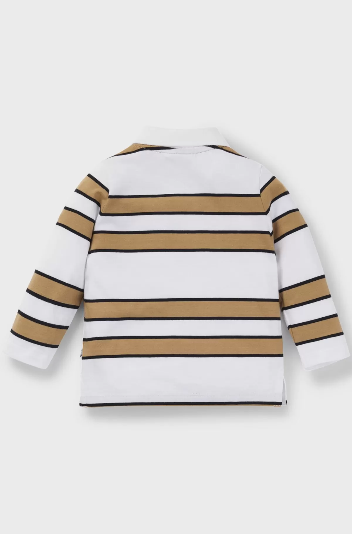 En poloshirt til børn af blød bomuld fra BOSS. Den har lange ærmer, vandrette striber og logoprint.