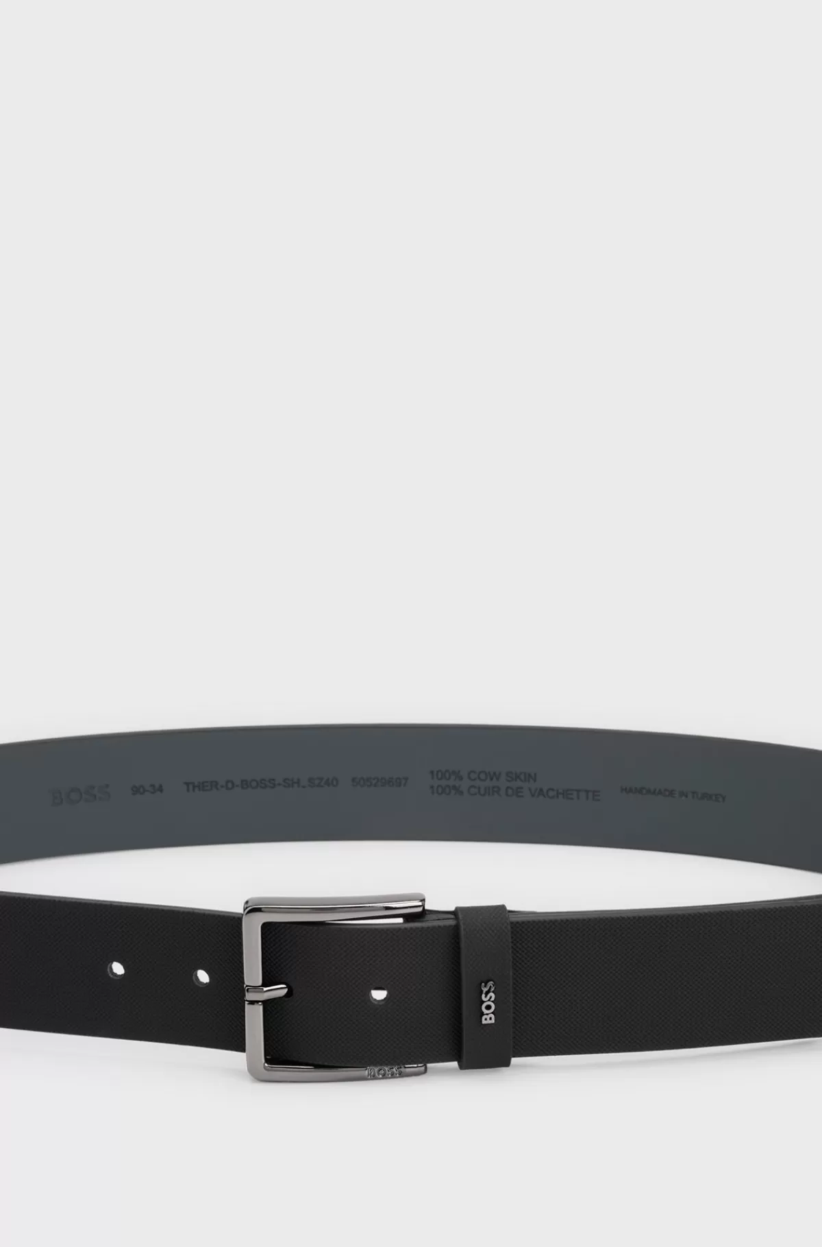 HUGO BOSS Præget Læderbælte Med Spænde Samt Logostrop Sort Clearance