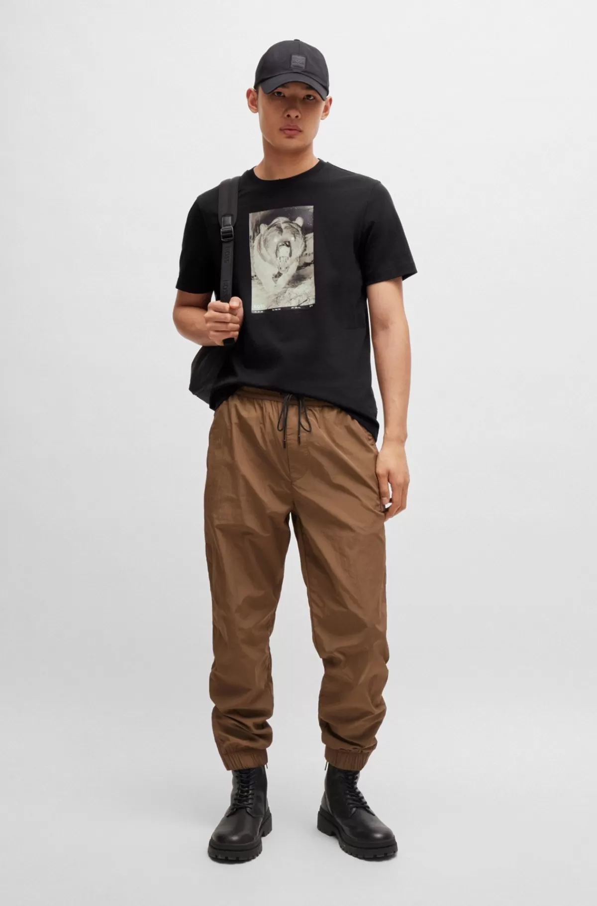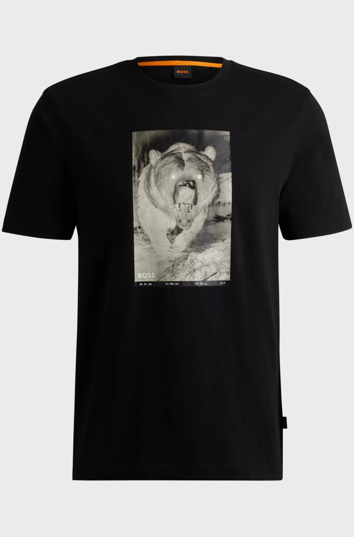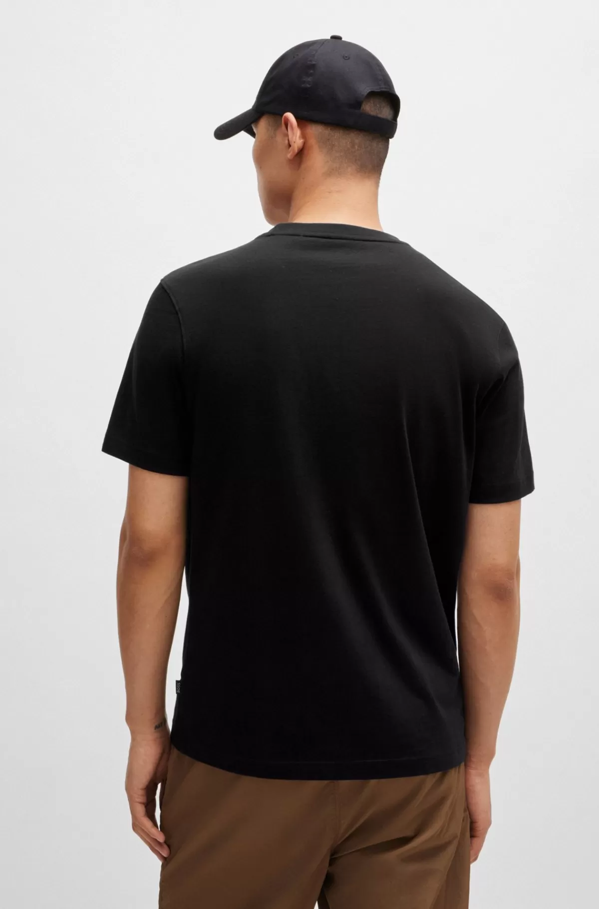 En statement-T-shirt fra BOSS Menswear. Denne T-shirt i bomuldsjersey har et regular fit og en printet signaturgrafik på brystet.