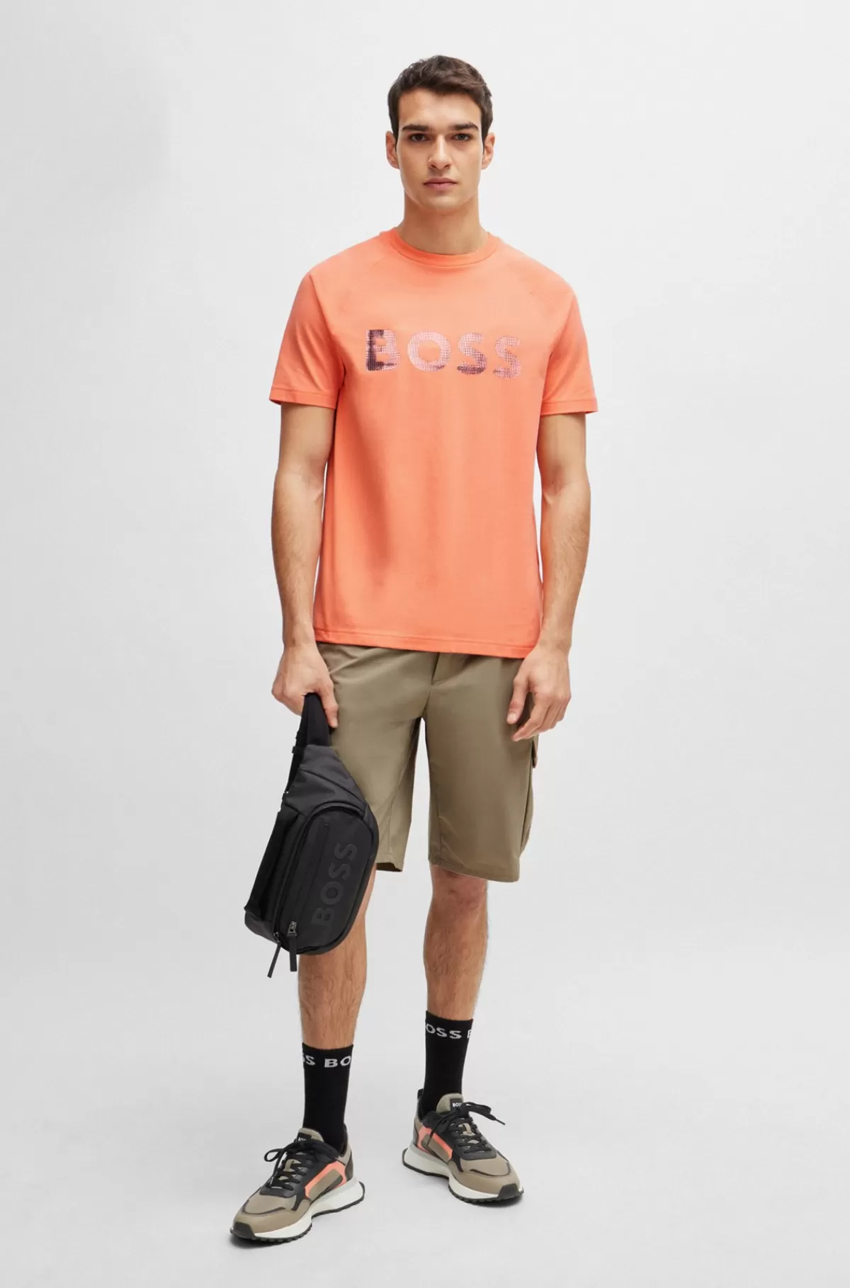 En signatur-T-shirt i almindelig pasform fra BOSS herretøj. Den er designet i strækjersey med et mønstret logoprint p…