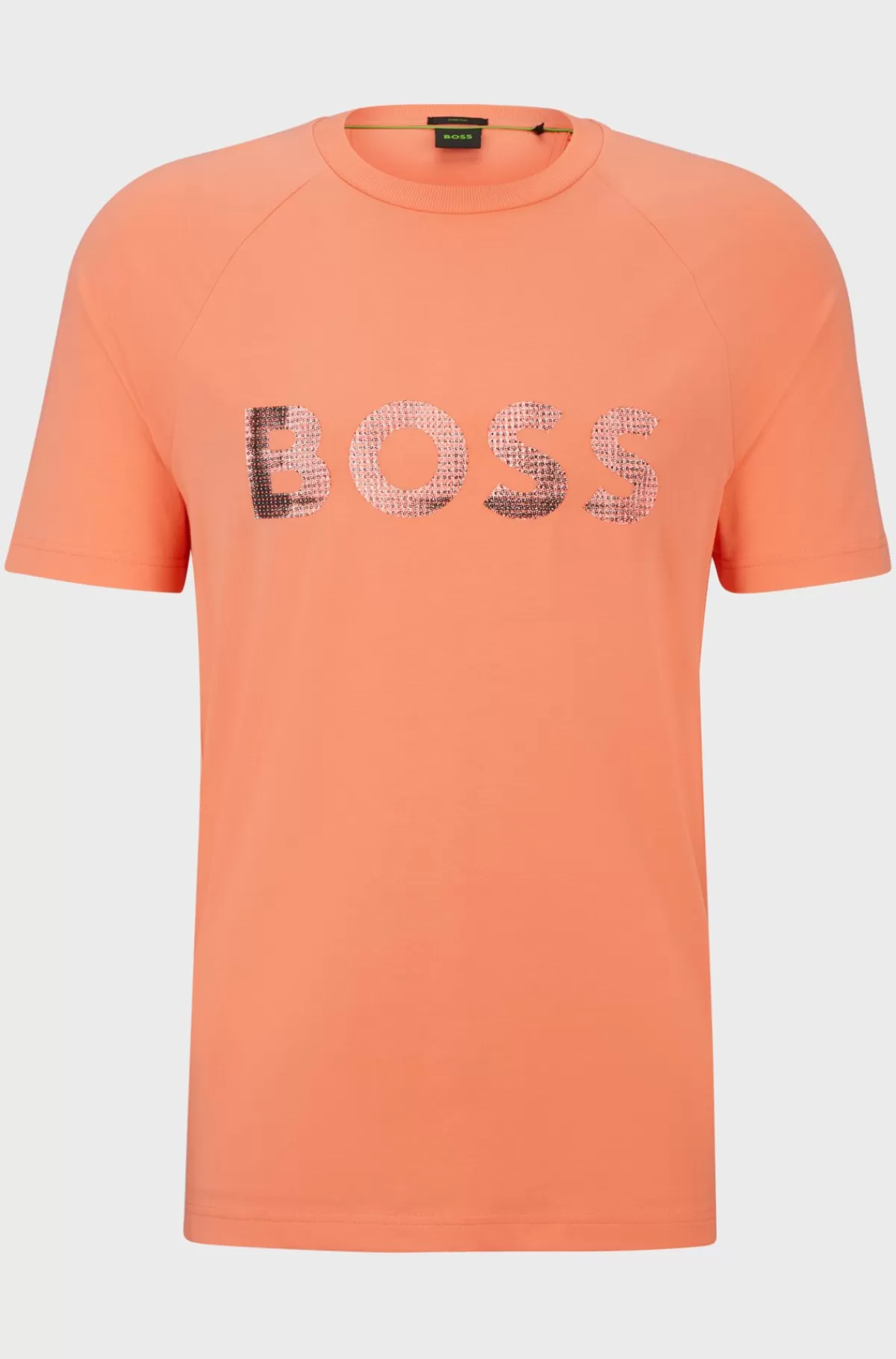 HUGO BOSS Regular Fit T-shirti Bomuldsjersey Med Sæsonbetonet Logo Lyserød Hot