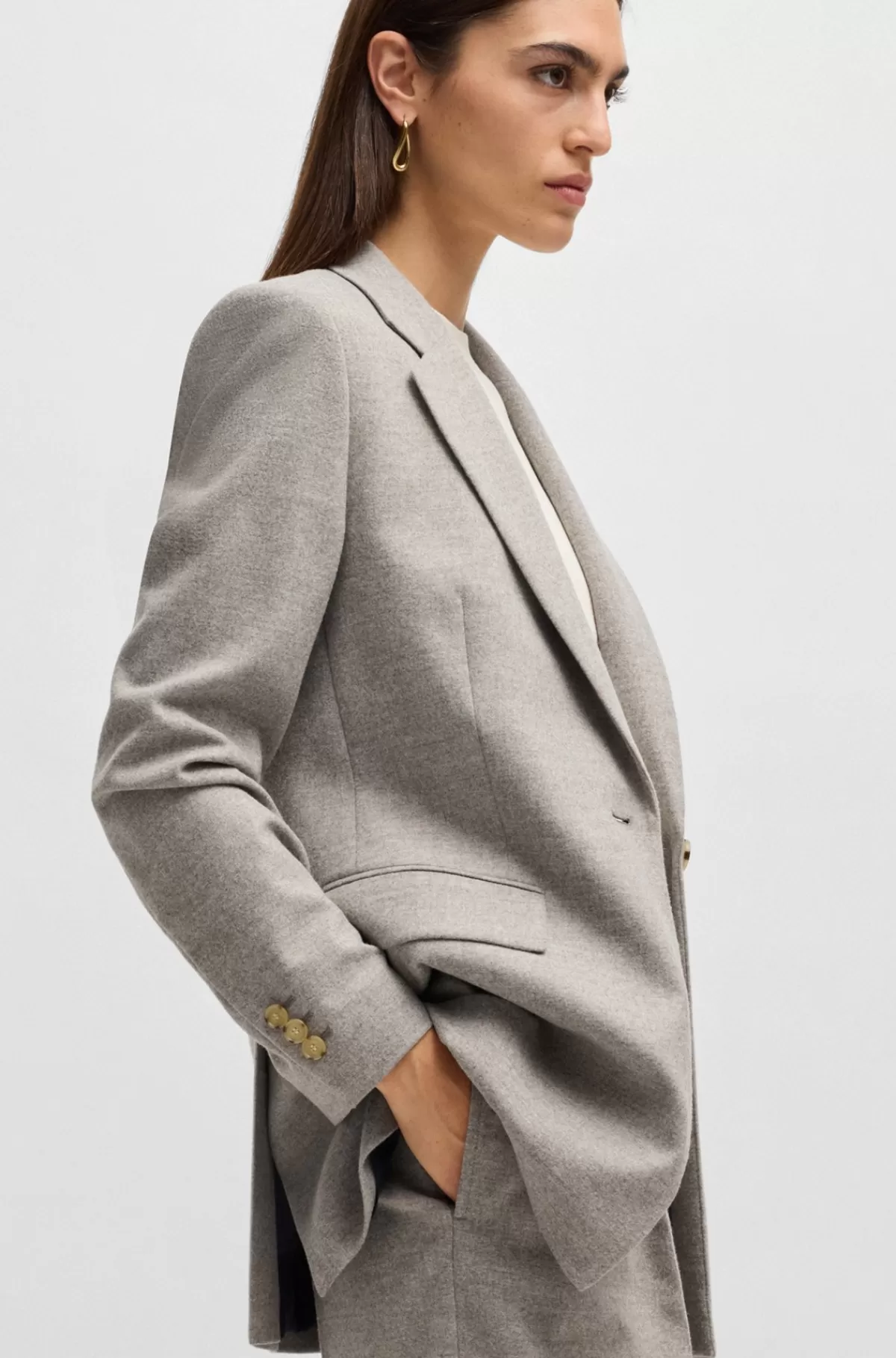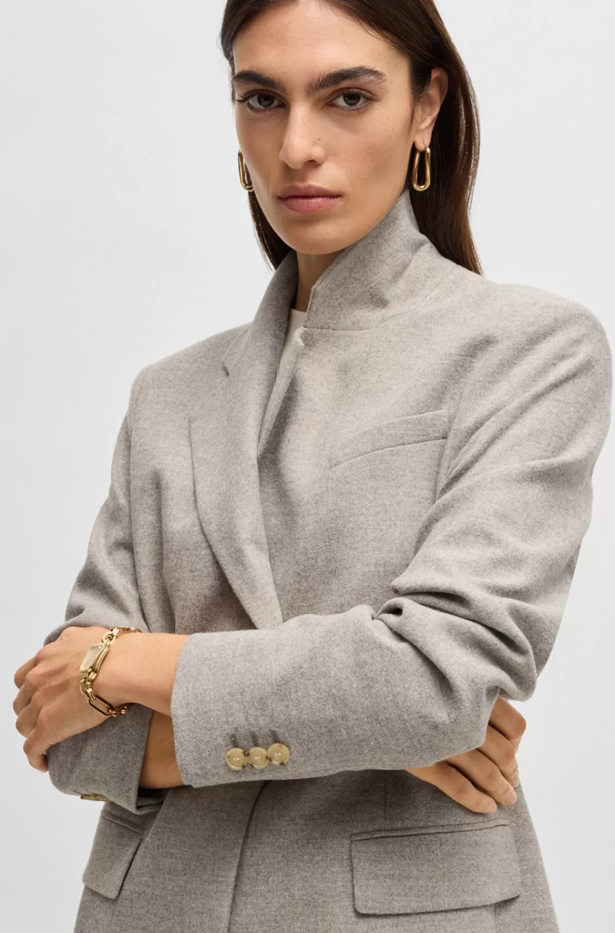 Underspillet jakke fra BOSS. Denne relaxed fit jakke er lavet i stof med stræk og lun uld.