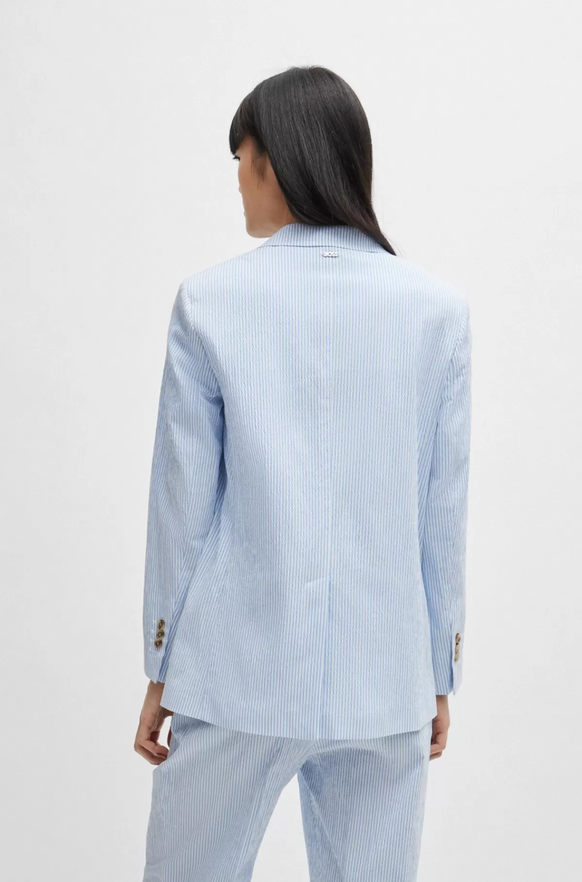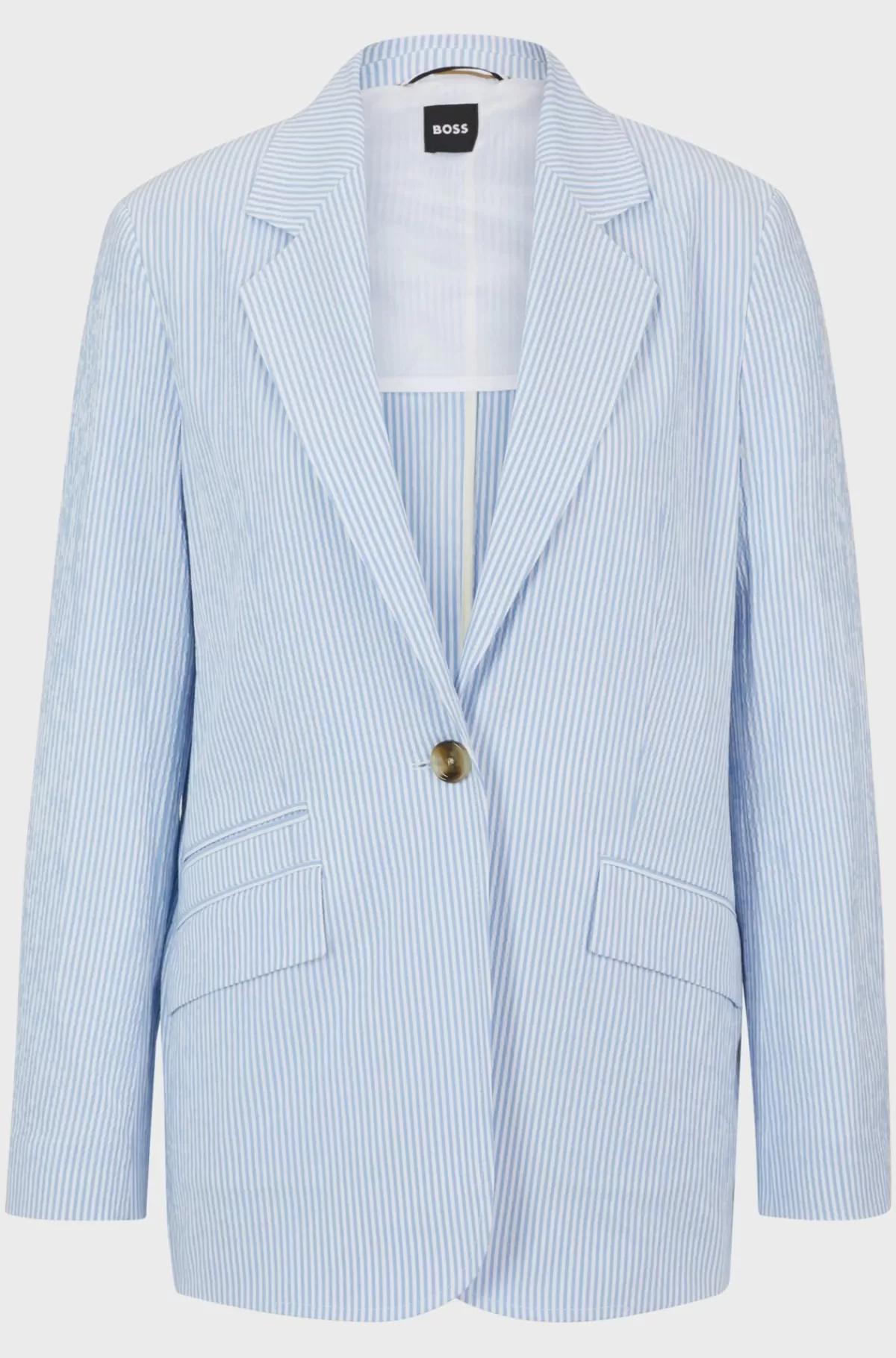 Relaxed fit jakke med en enkelt knap fra BOSS Womensweari bomuld-seersucker med stræk mønstret med lodrette striber. A…