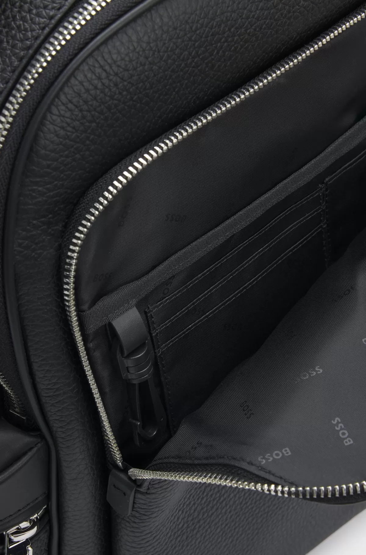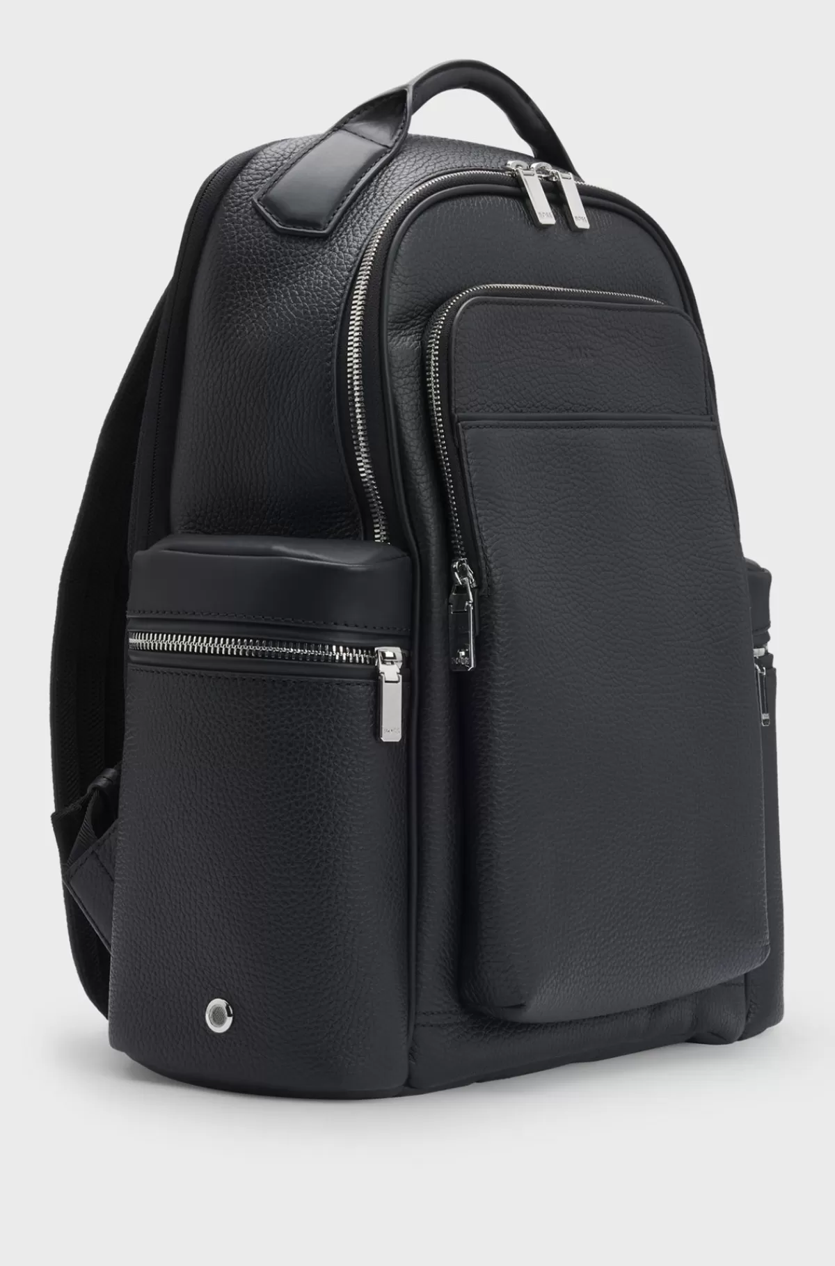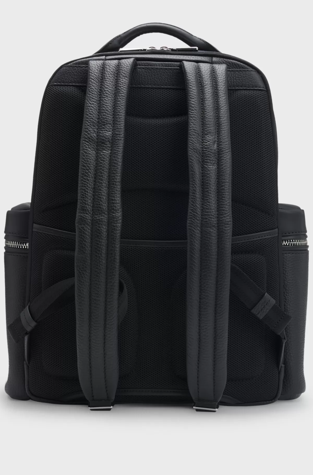 HUGO BOSS Rygsæk Med Flere Lommer I Italiensk Læder Med Signaturdetaljer Sort Outlet