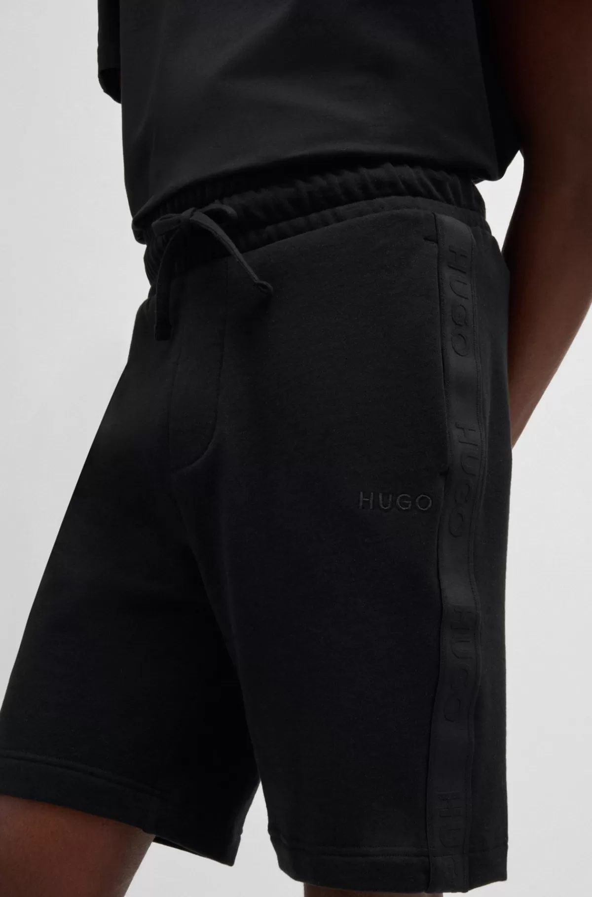HUGO BOSS Shorts I Bomuldsfrotté Med Logobånd I Sidesømmen Sort Cheap