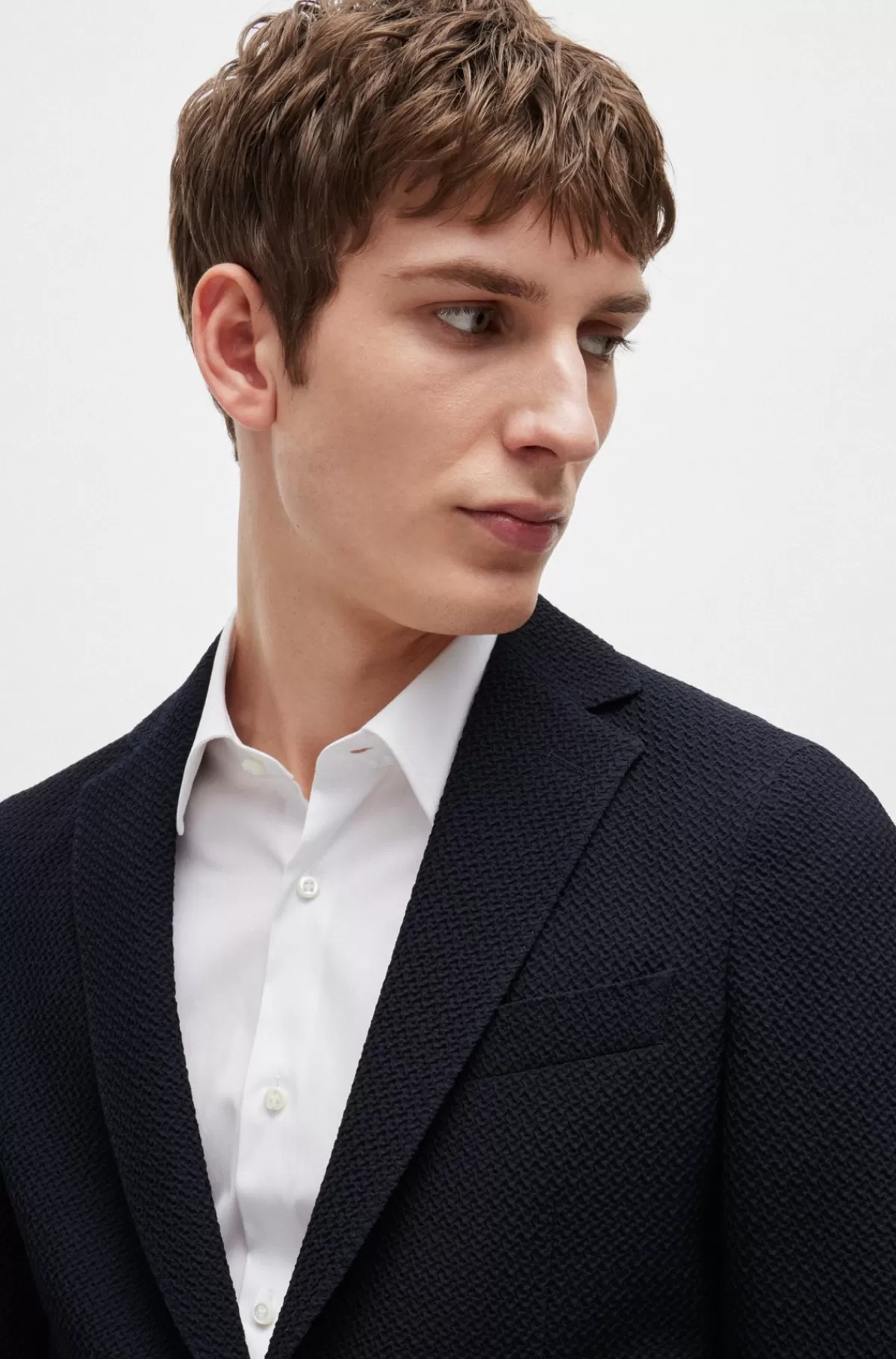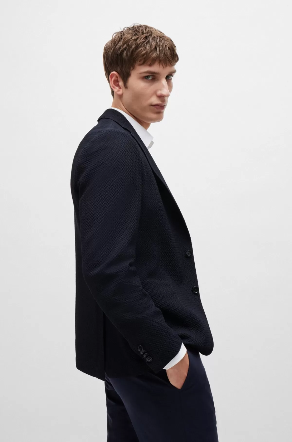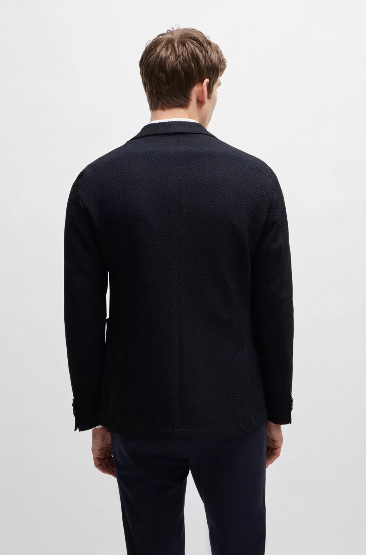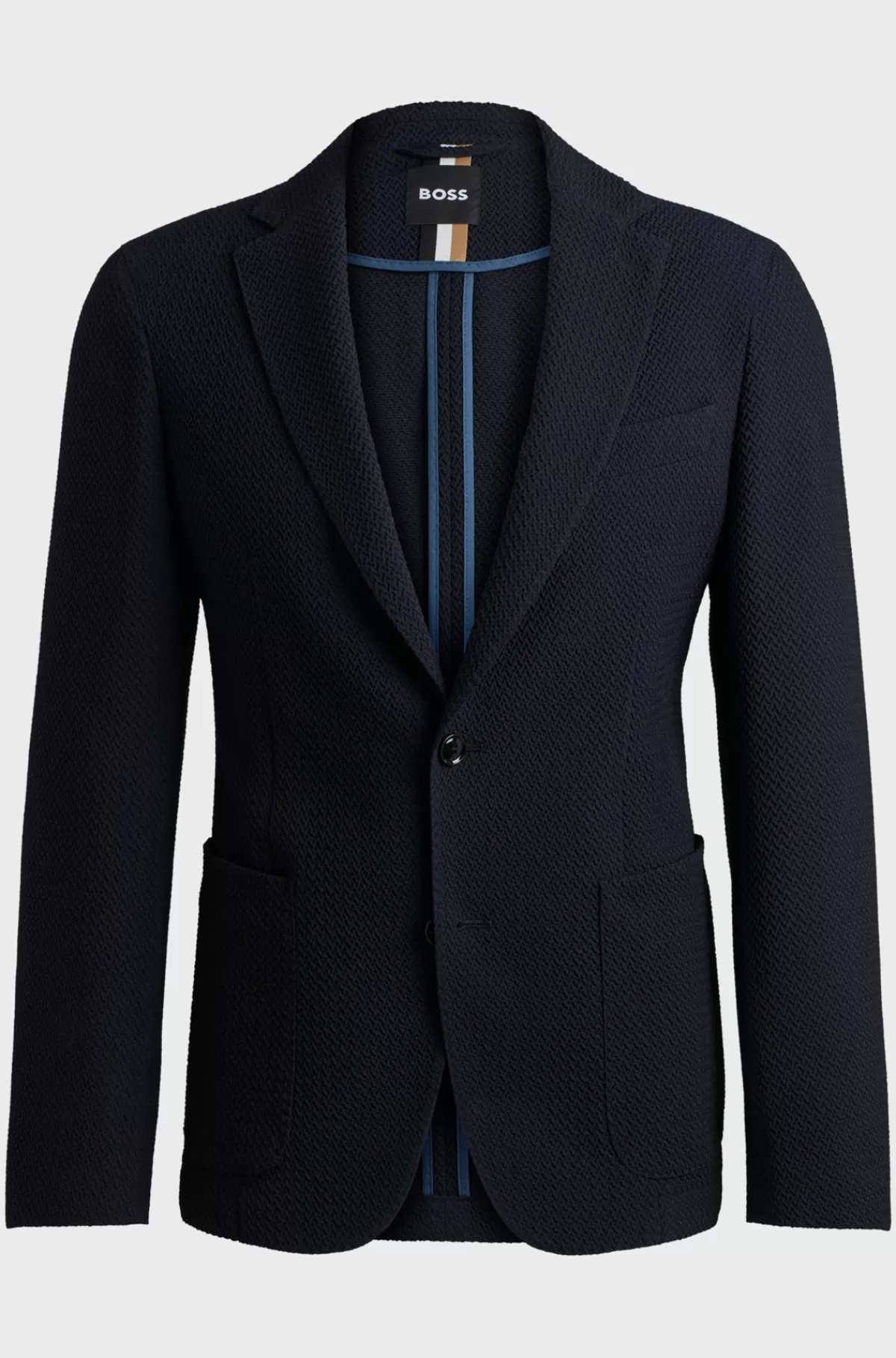 HUGO BOSS Slim Fit Jakke I Uldblanding Med Bæk Og Bølge-struktur Mørkeblå Discount