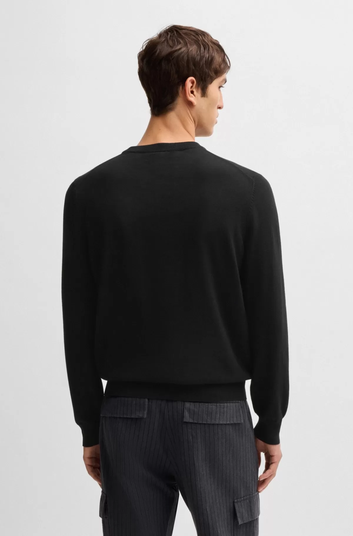 En signatursweater med crew neck i blødt garn fra BOSS Menswear. Denne sweater med broderet branding har et regular fit. Produktets råmateriale stammer fra regenerativt landbrug: En tilgang med fokus på bevaring og genetablering, der øger biodiversiteten, bevarer vandkvaliteten og forbedrer jordens sundhed, mens CO2 absorberes. Regenerativt landbrug fremmer også dyrevelfærden og de rimelige arbejdsvilkår for landmænd.