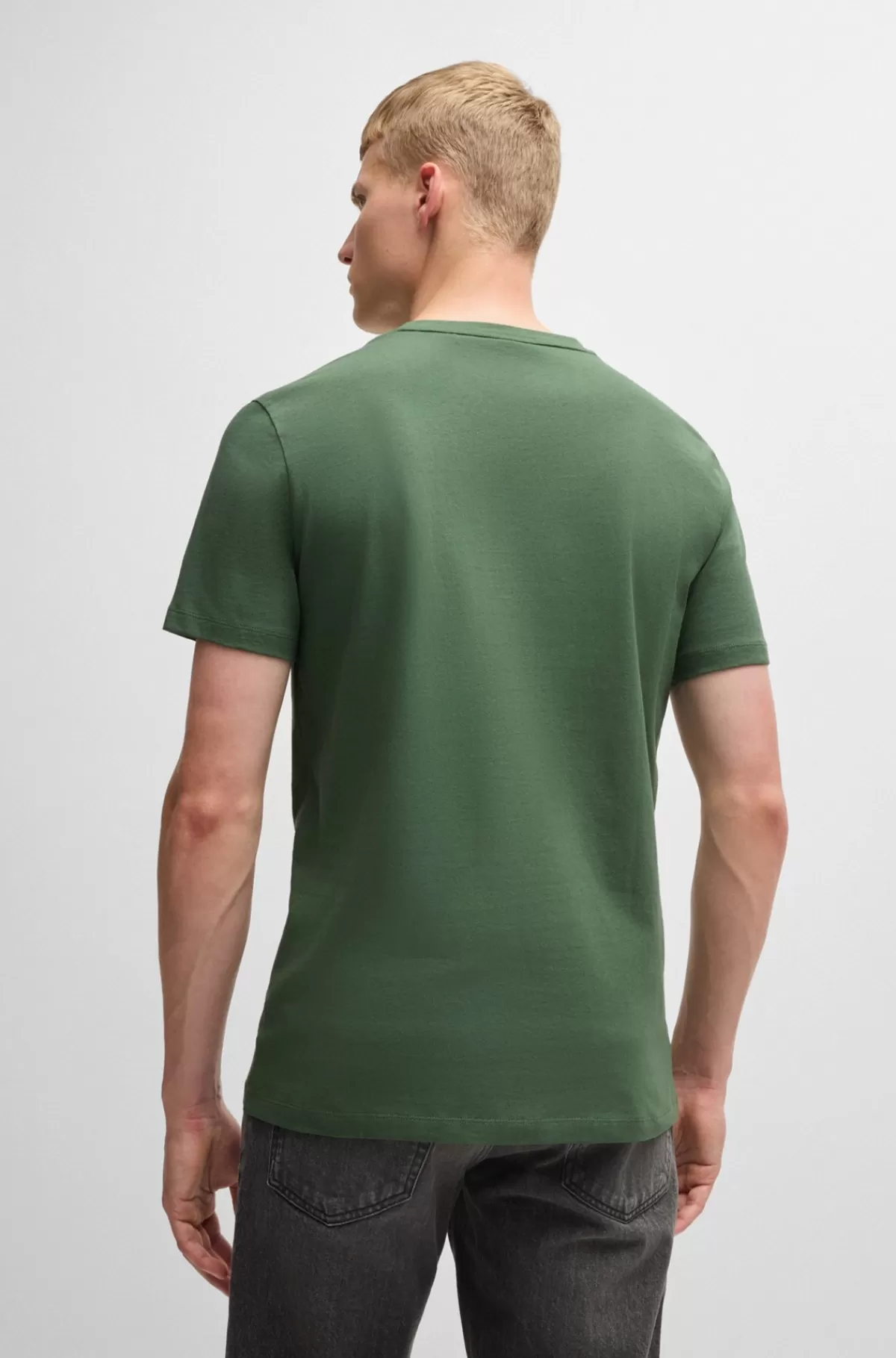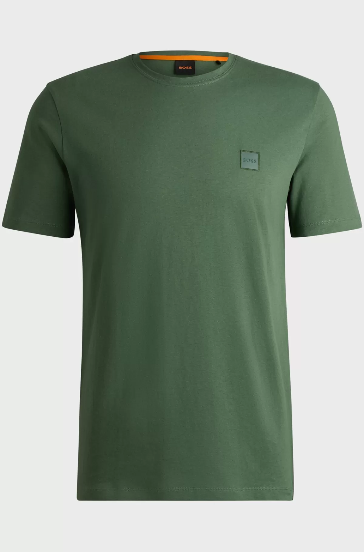 Skønrelaxed fit T-shirt med vævet logomærke fra BOSS Menswear, fremstillet i mellemtykt jersey i blød bomuld.