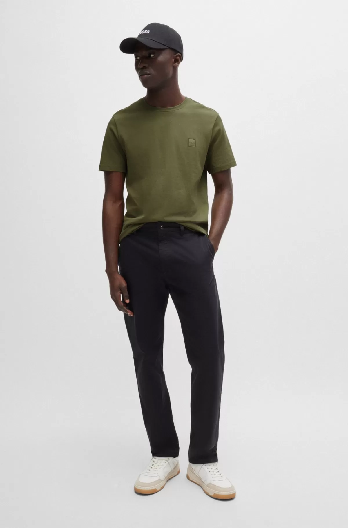 Skønrelaxed fit T-shirt med vævet logomærke fra BOSS Menswear, fremstillet i mellemtykt jersey i blød bomuld.