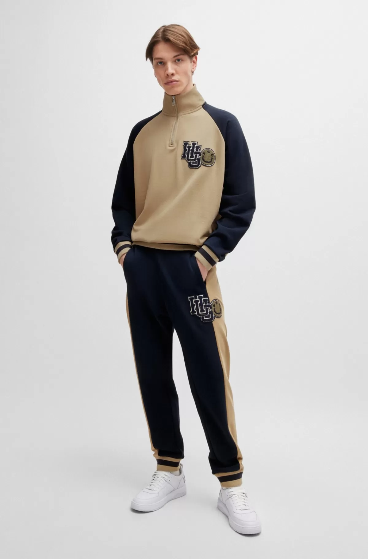 Tracksuit-bukser med colour-blocking fra HUGO. Disse bukser med loose fit og broderet chenille-logo i varsity-stil er lavet i bomuldsfrotté.