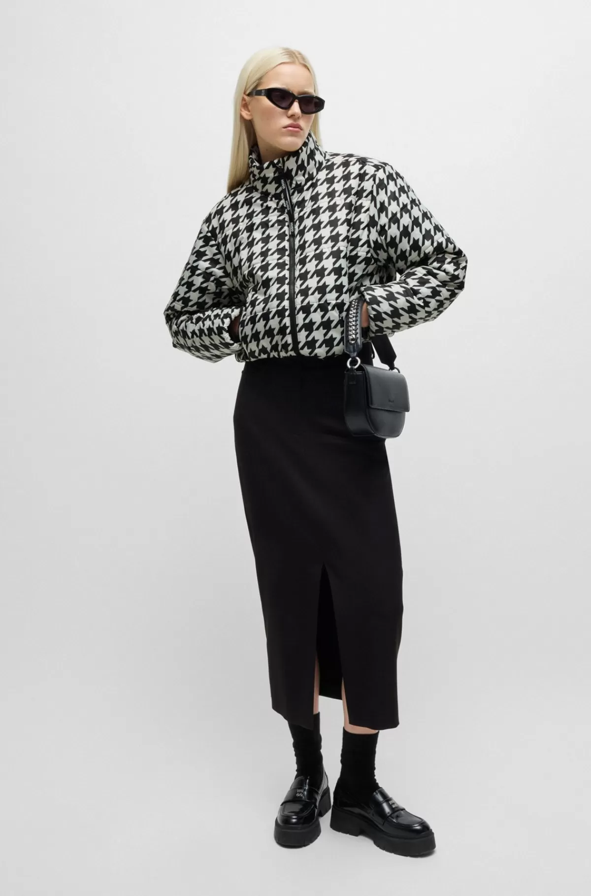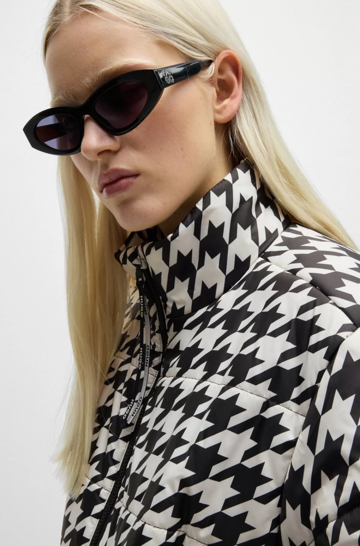 HUGO BOSS Vandskyende Jakke Med Regular Fit Og Hanefjedsprint Hvid/sort Clearance